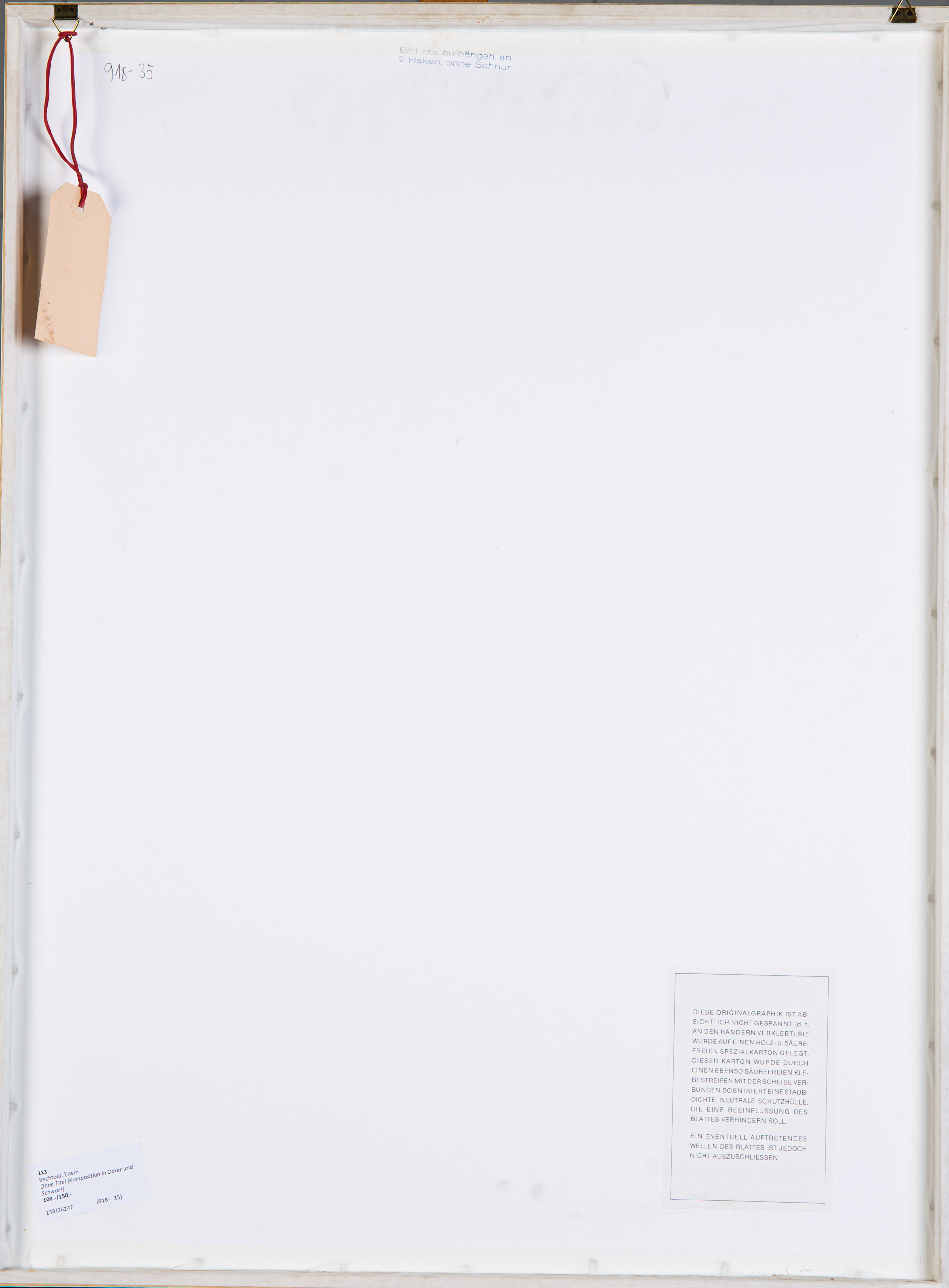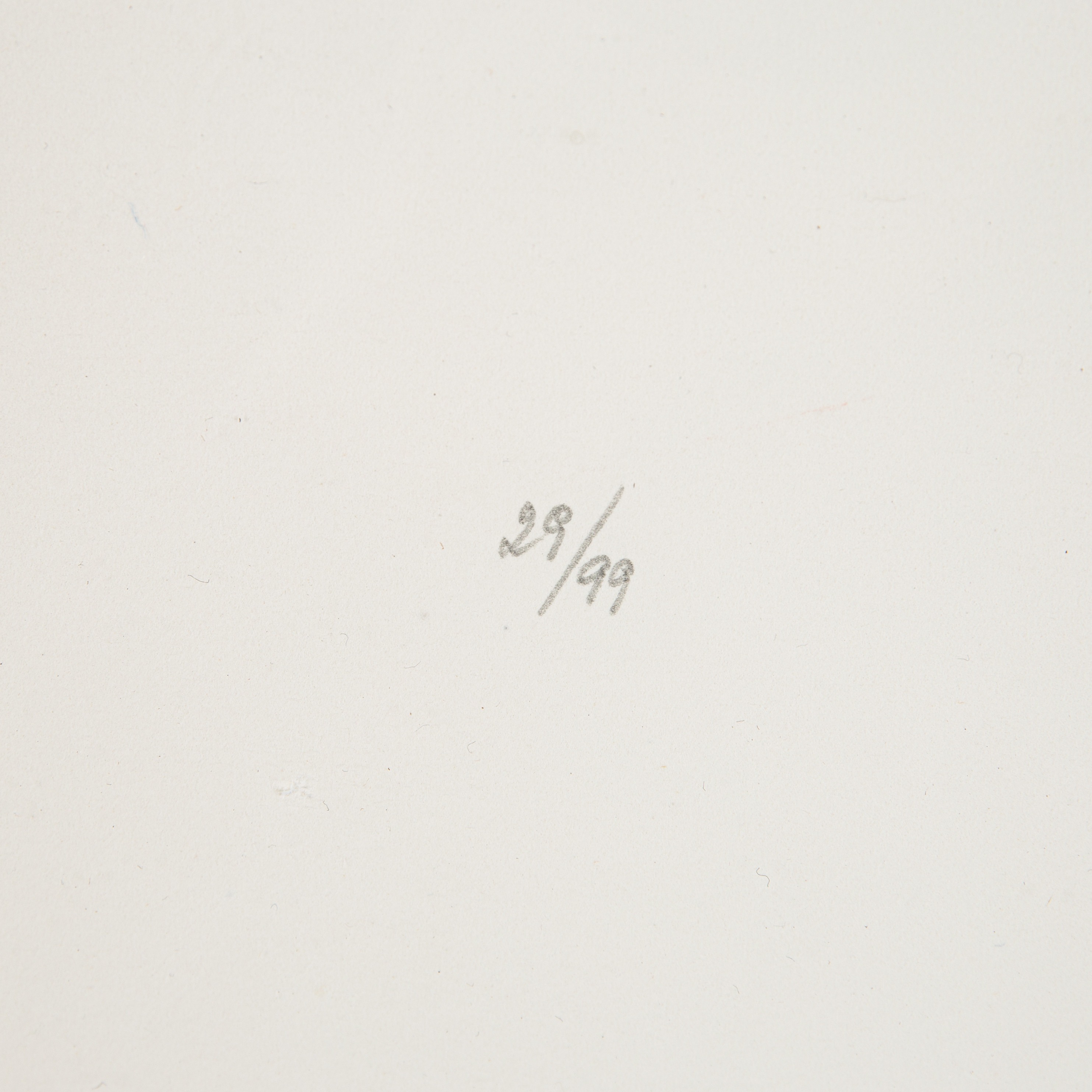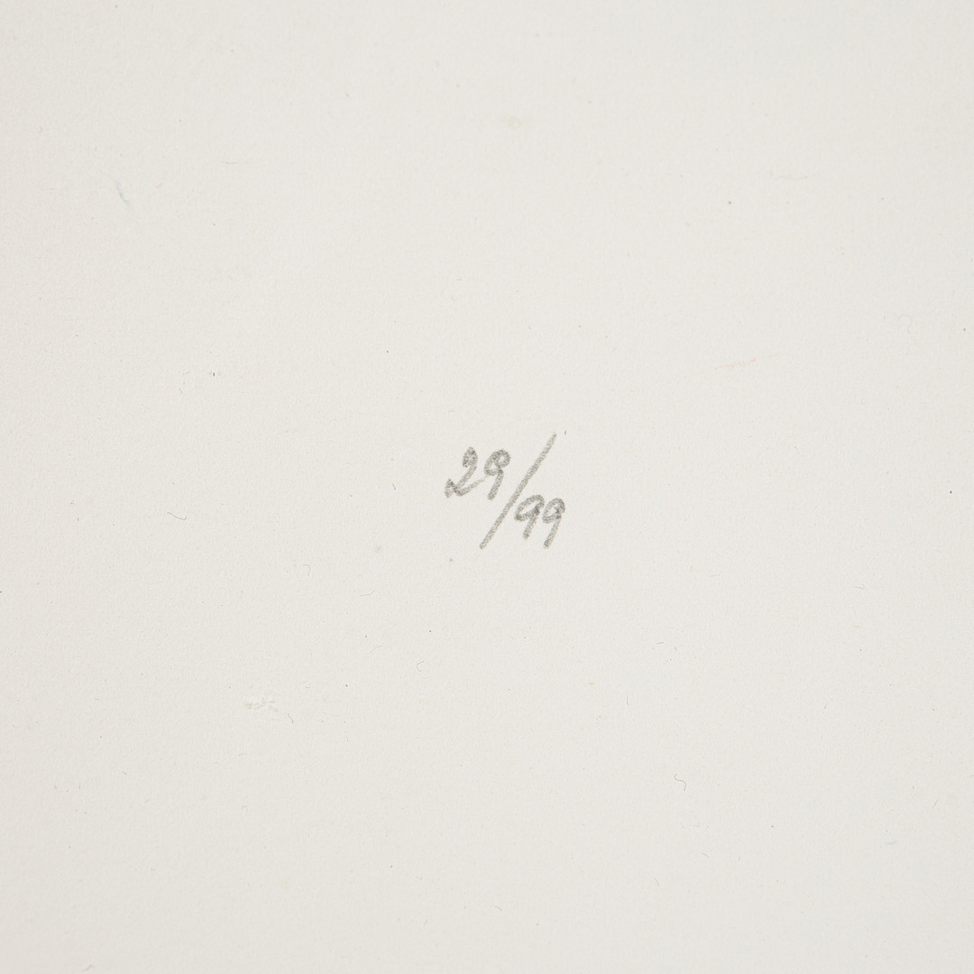 1710954. ERWIN BECHTOLD. Erwin Bechtold, farvelitografi, komposition i okker og sort.
