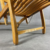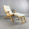 Liggestol i bøg med original hynde. Ca Højde 84, sædedybde 48, længde i maksimal position 156 cm.