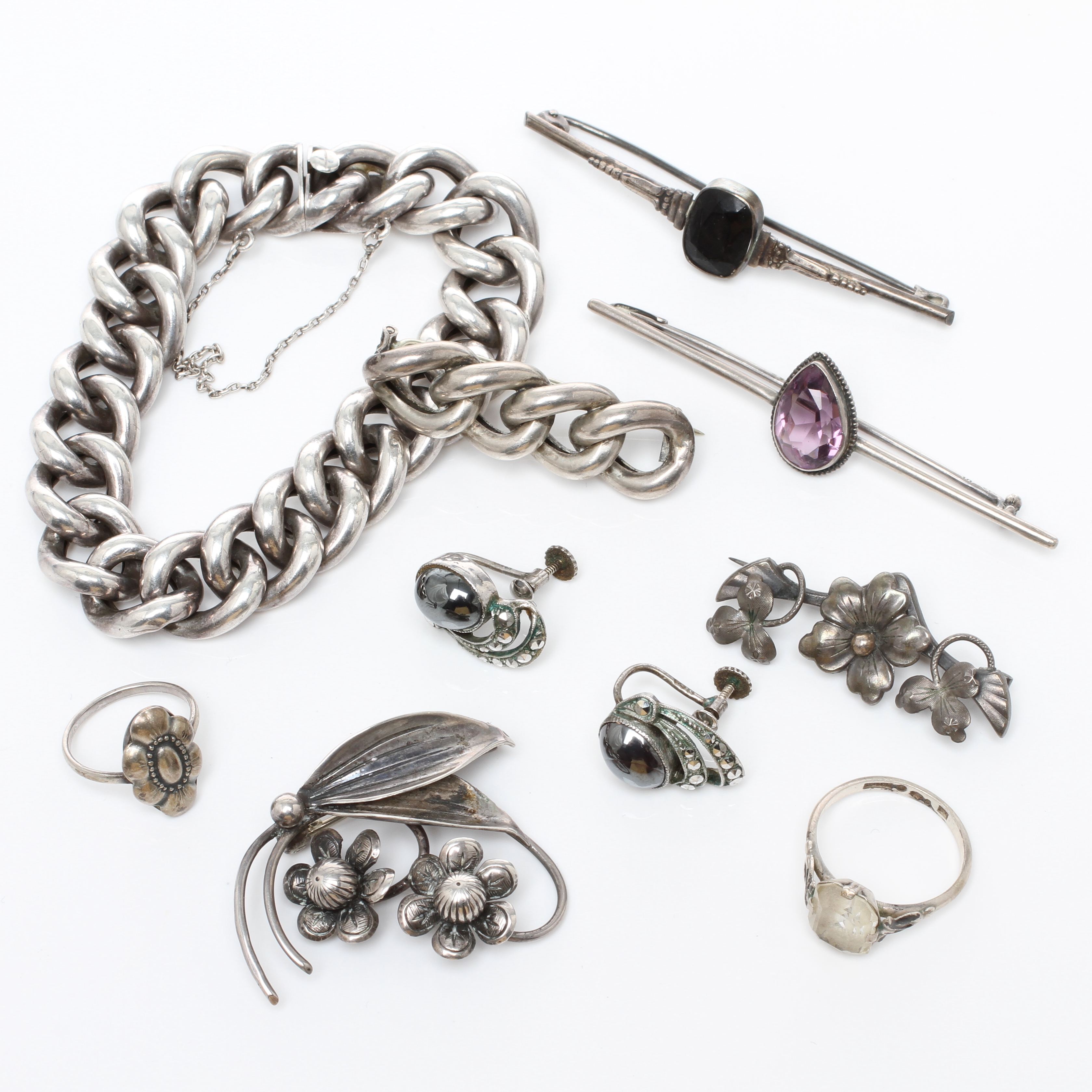 171315. SMYKKER, 9 dele, sølv, 1900/2000.