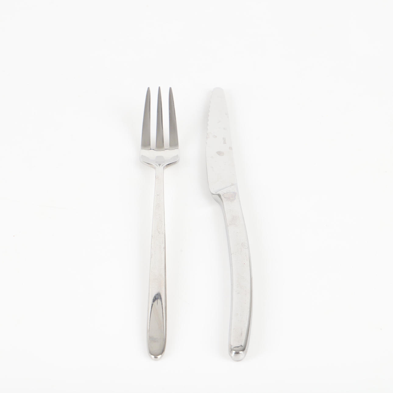 12 gafler, længde 20 cm, 12 knive, længde 23 cm.