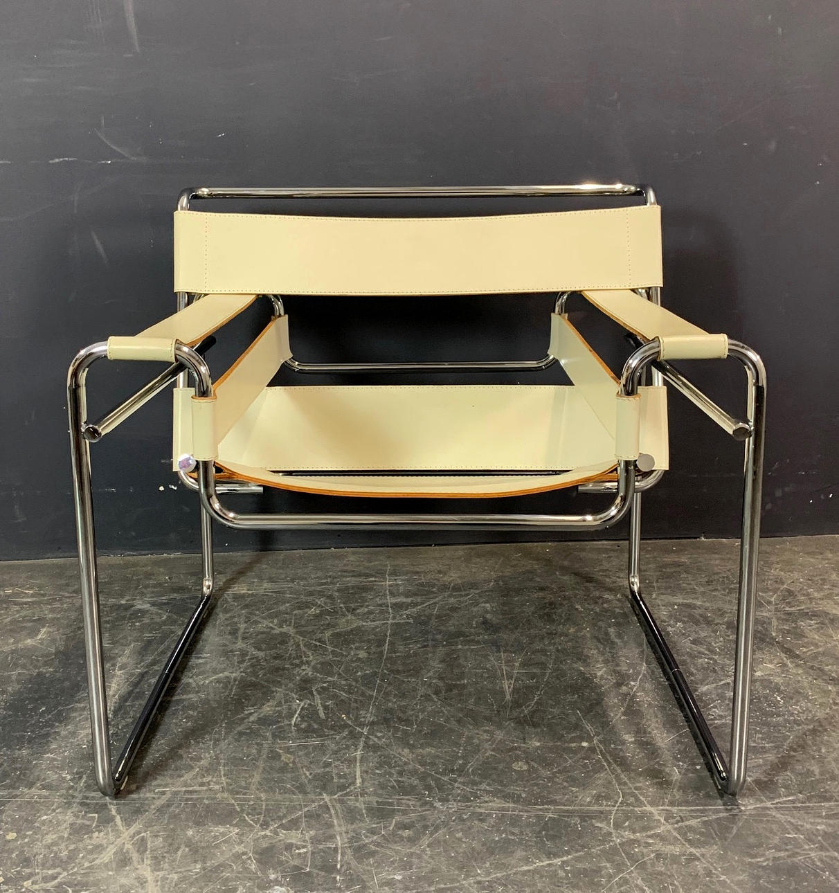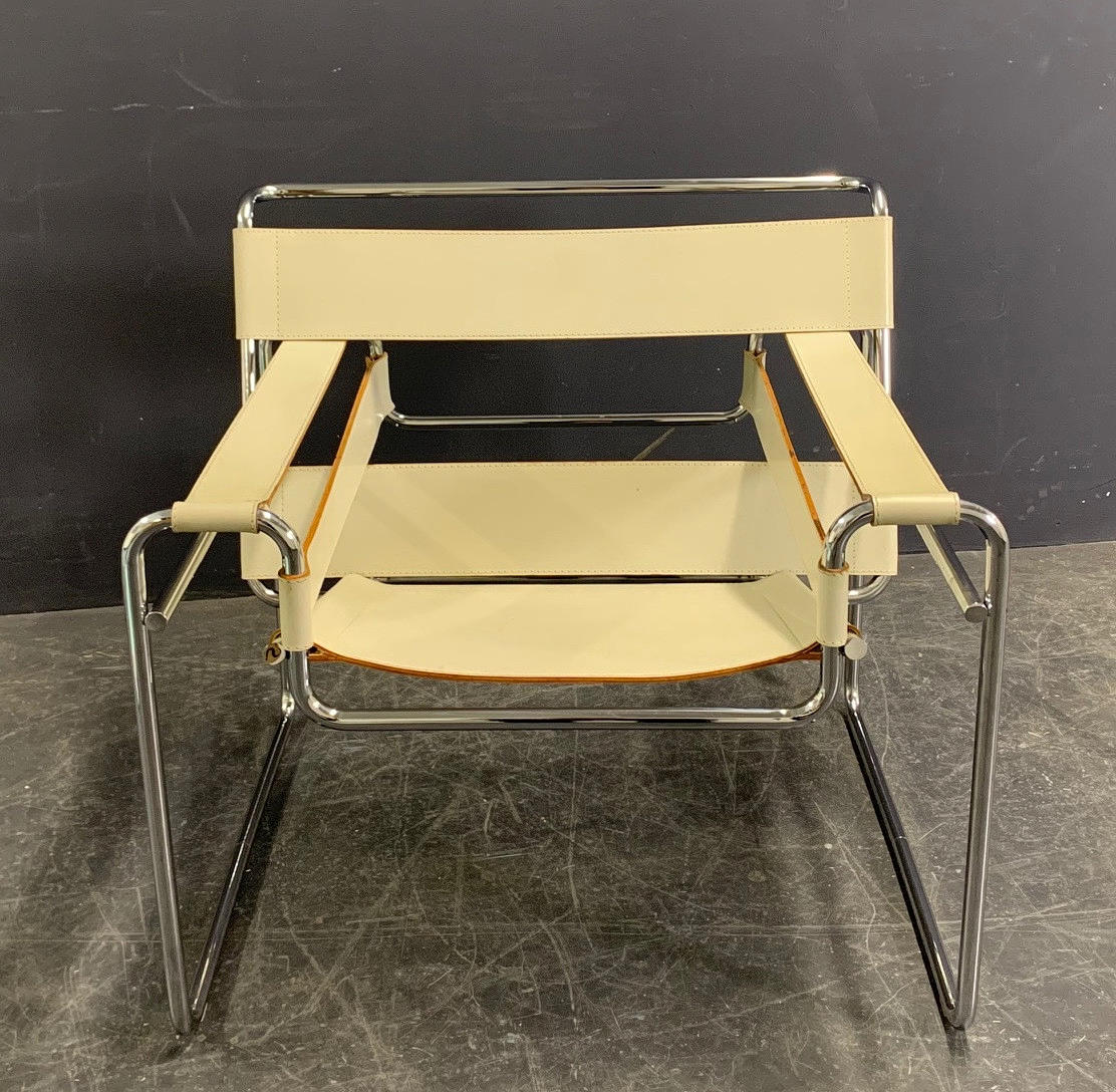 Design Marcel Breuer 1925 Produceret af Knoll International Forkromet stel med betræk af hvid røvlæder.