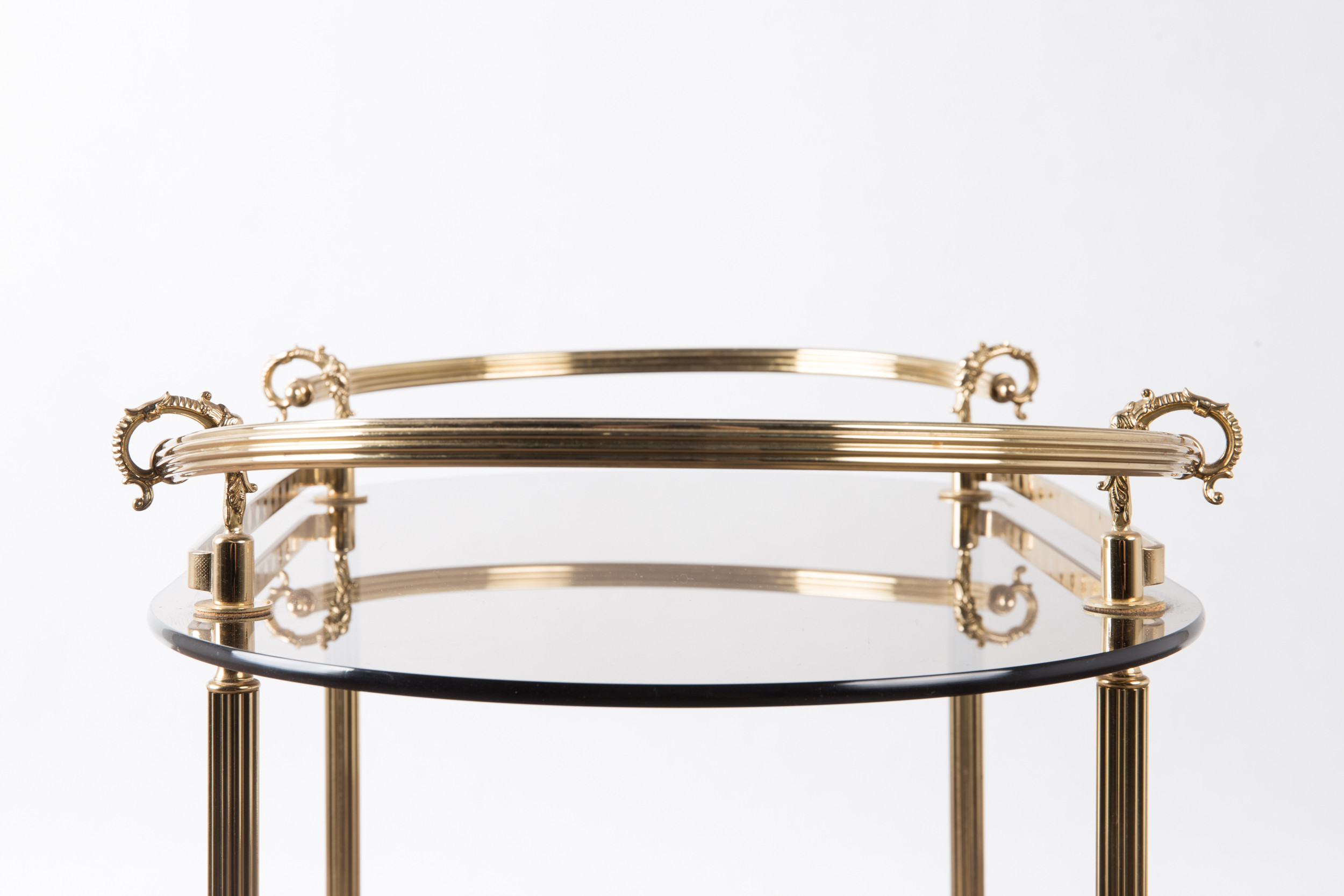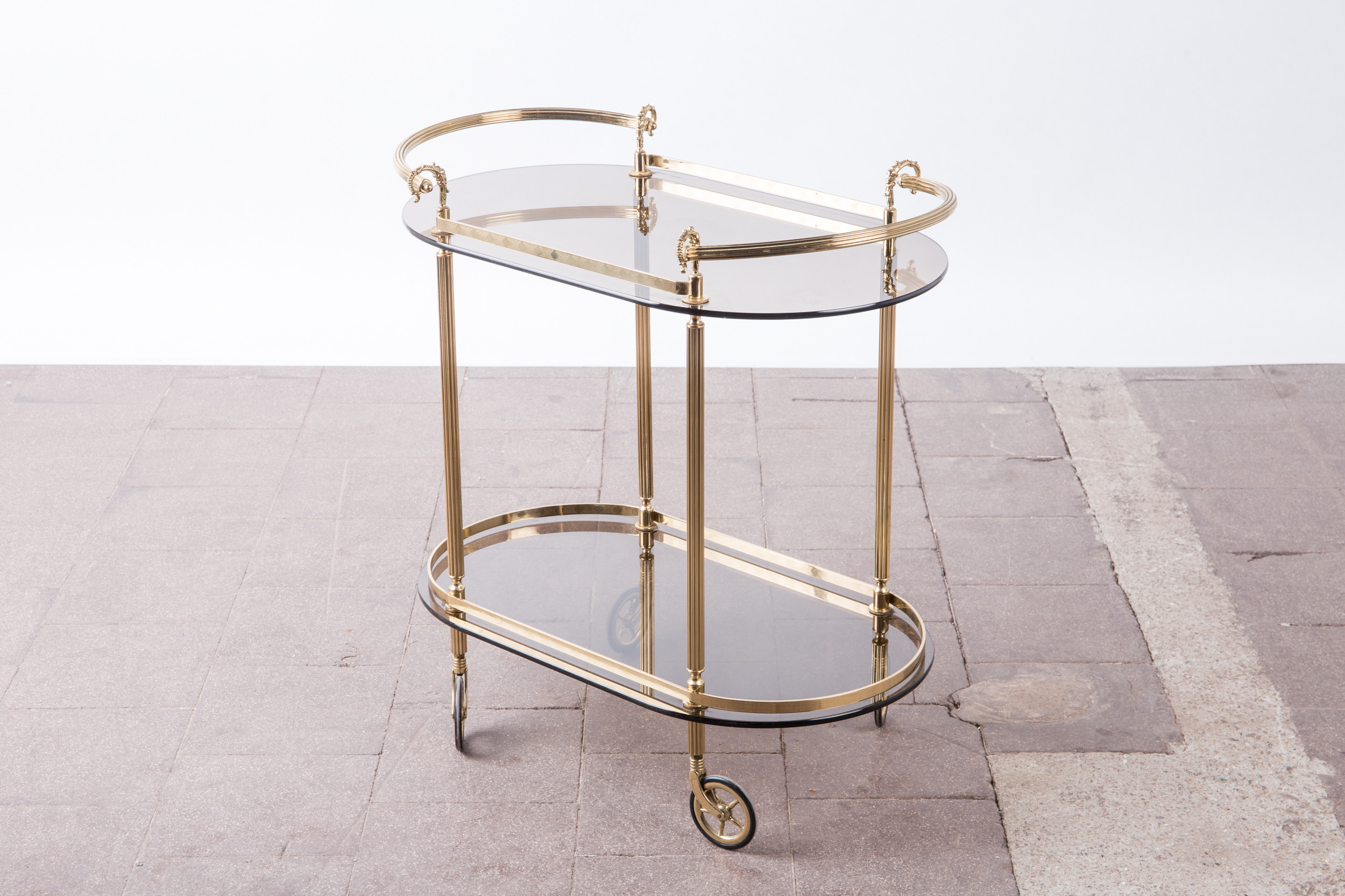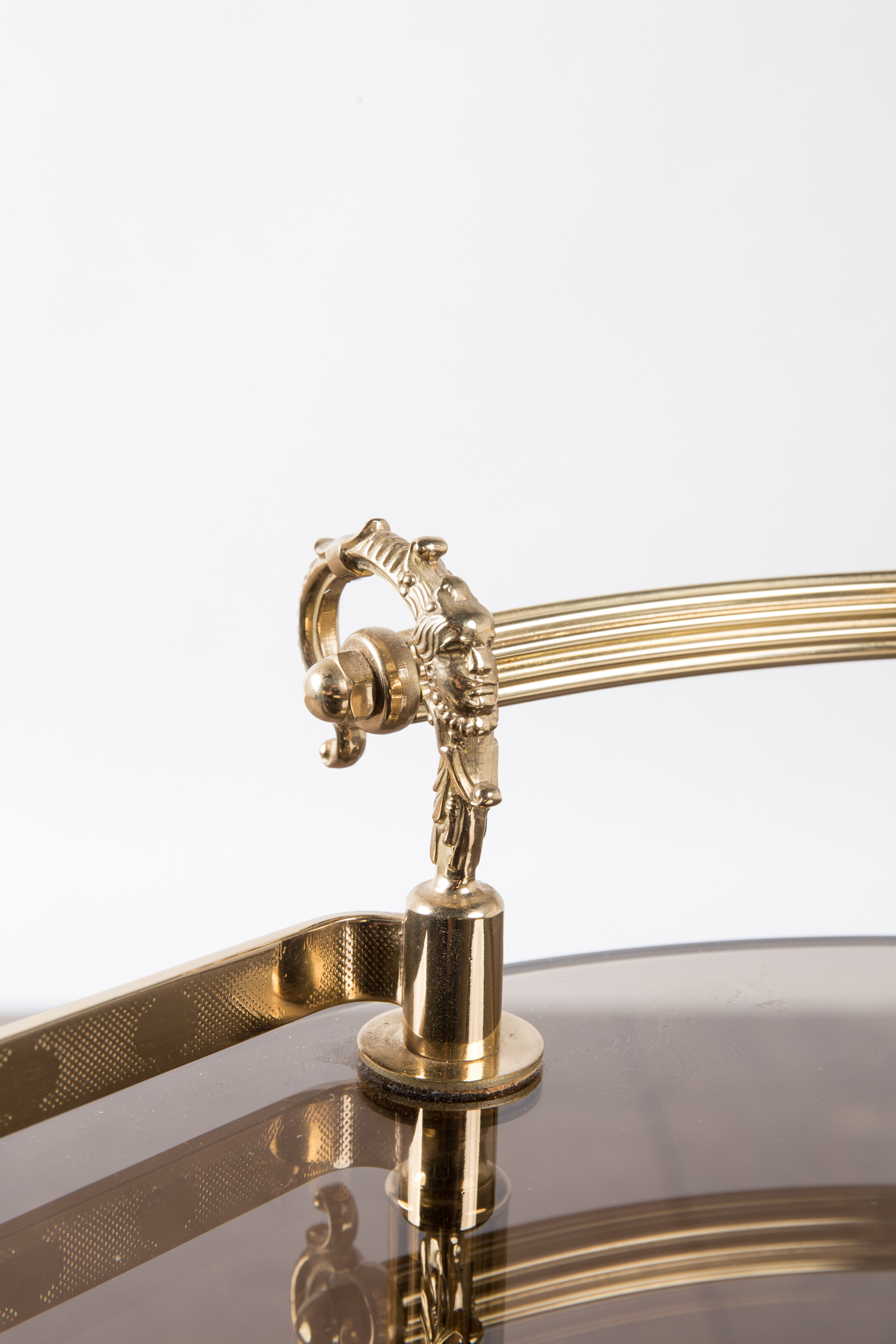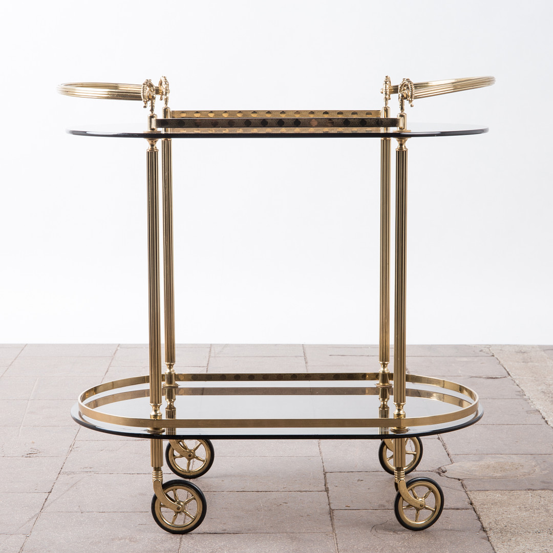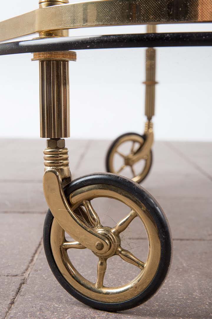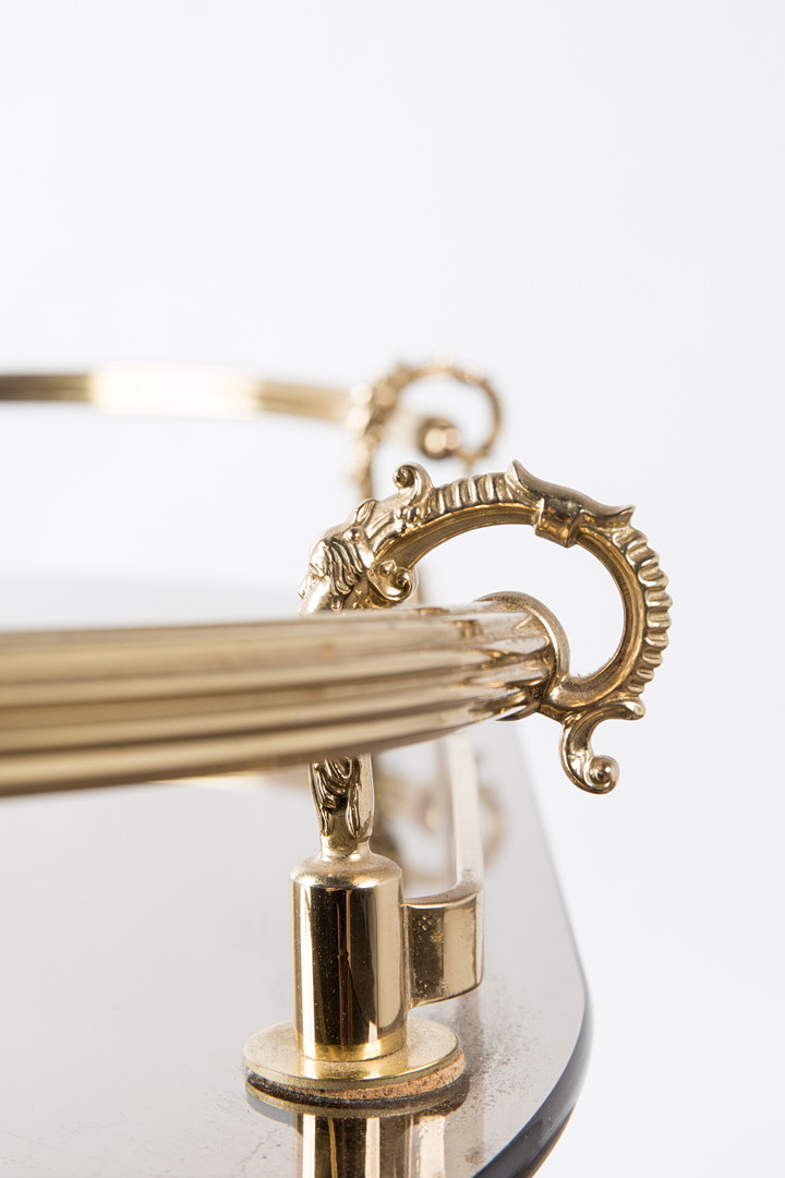 1720543. Barvogn / serveringsvogn, messing, røget glas.