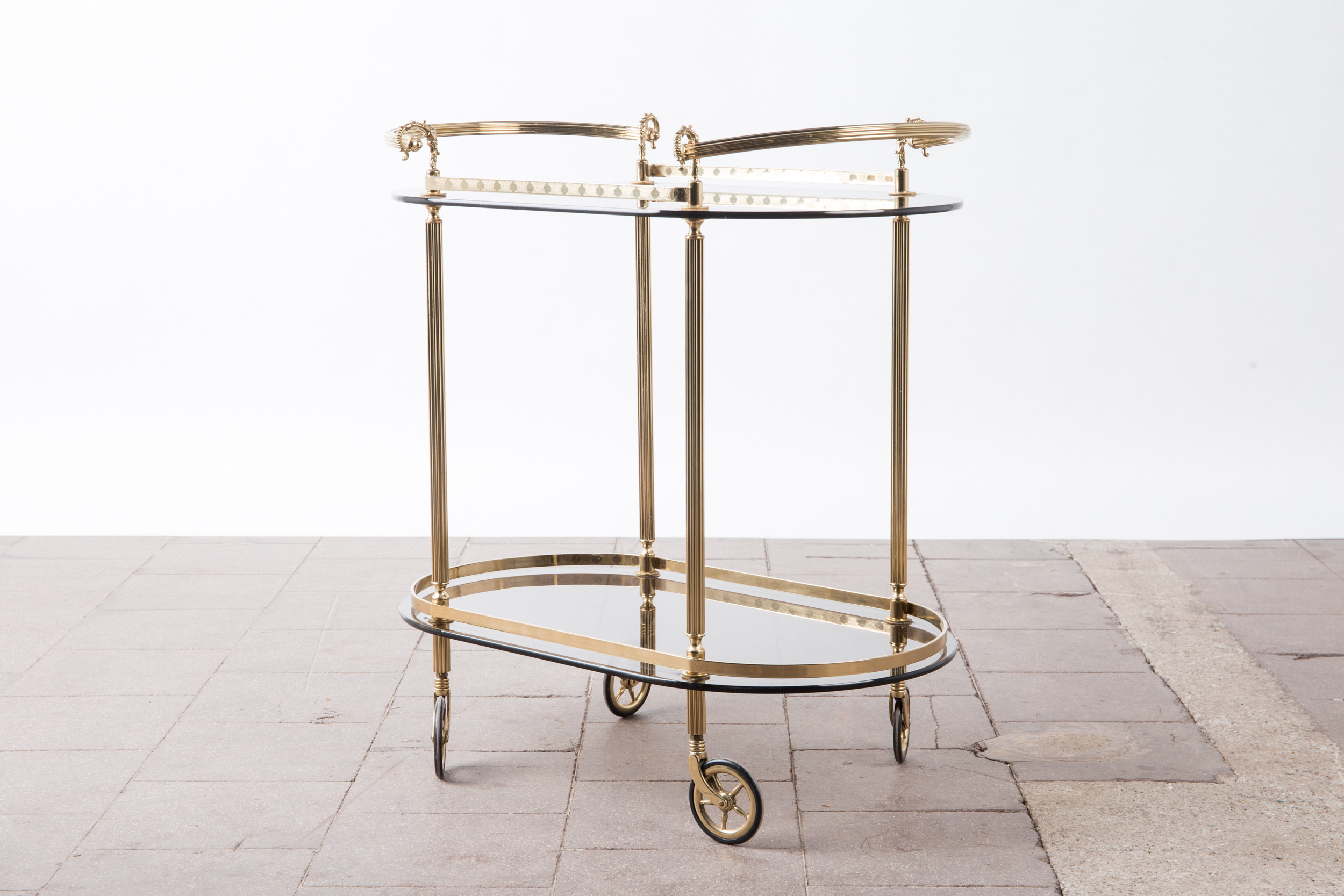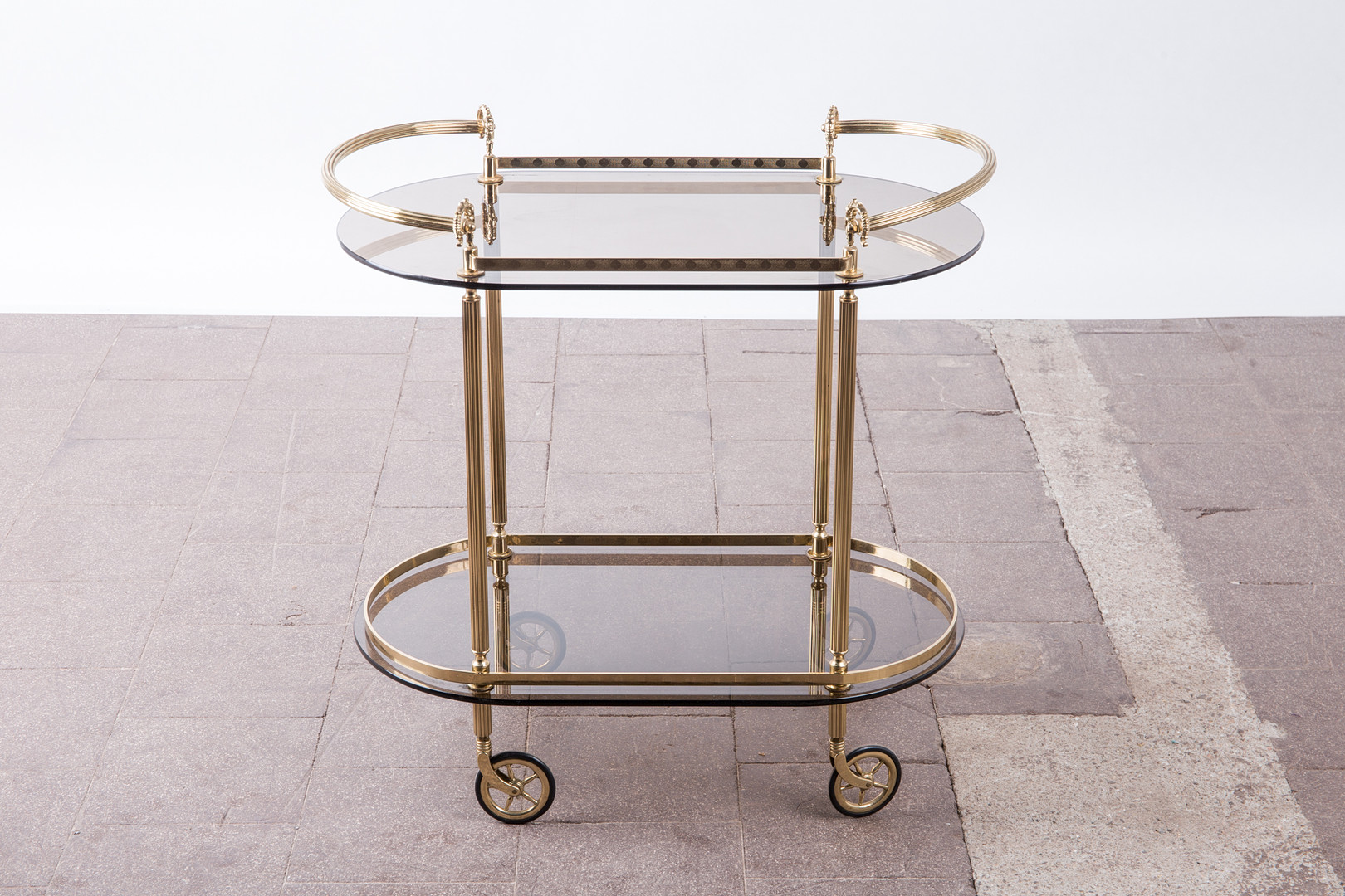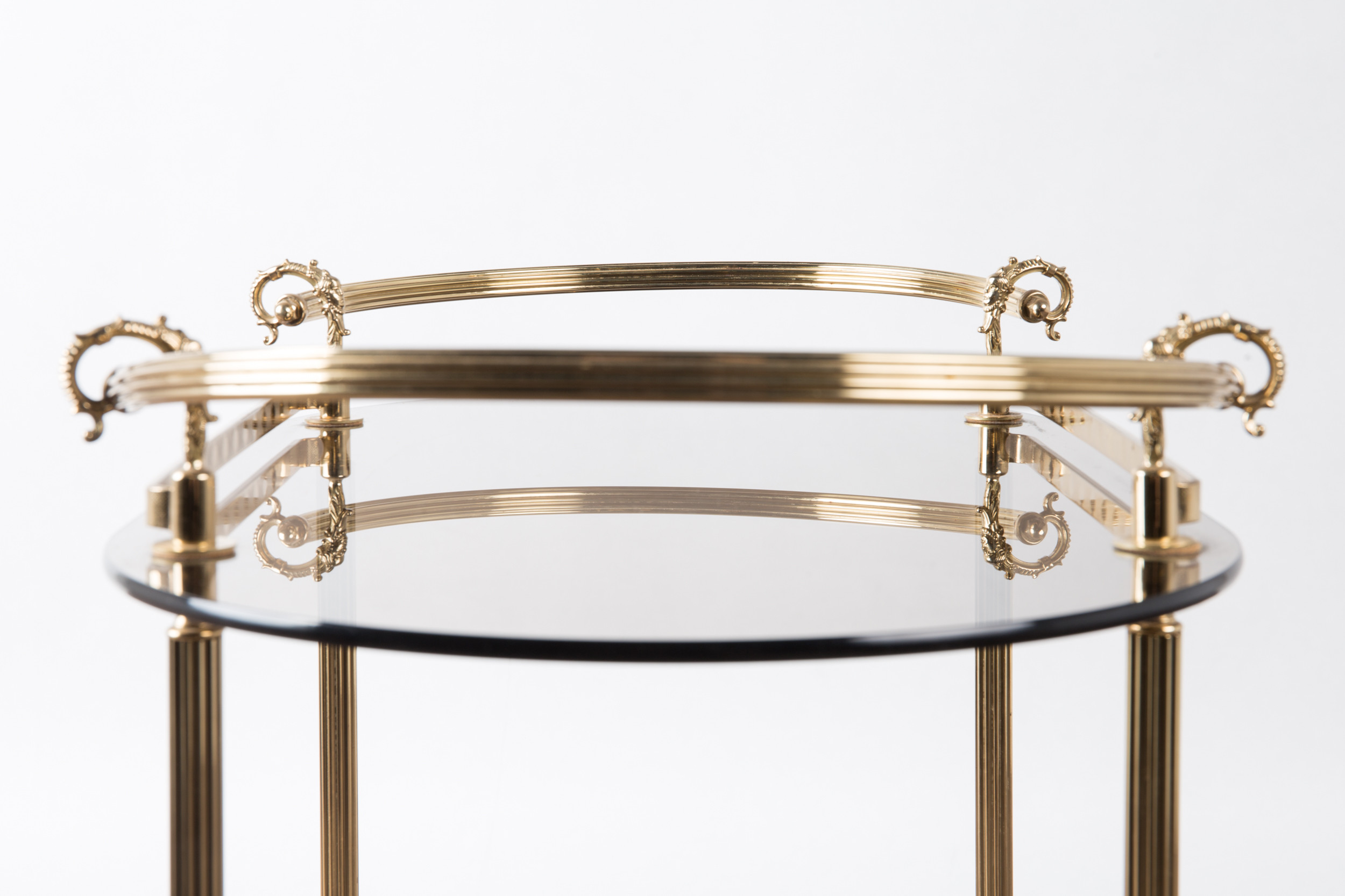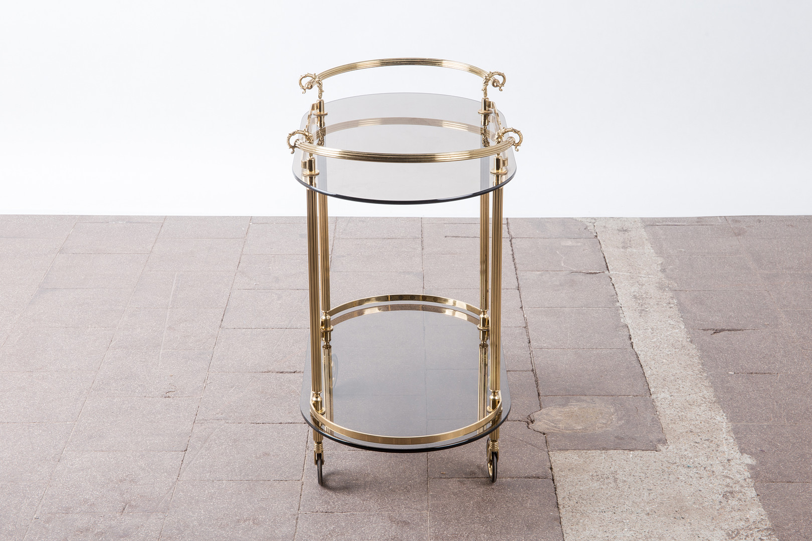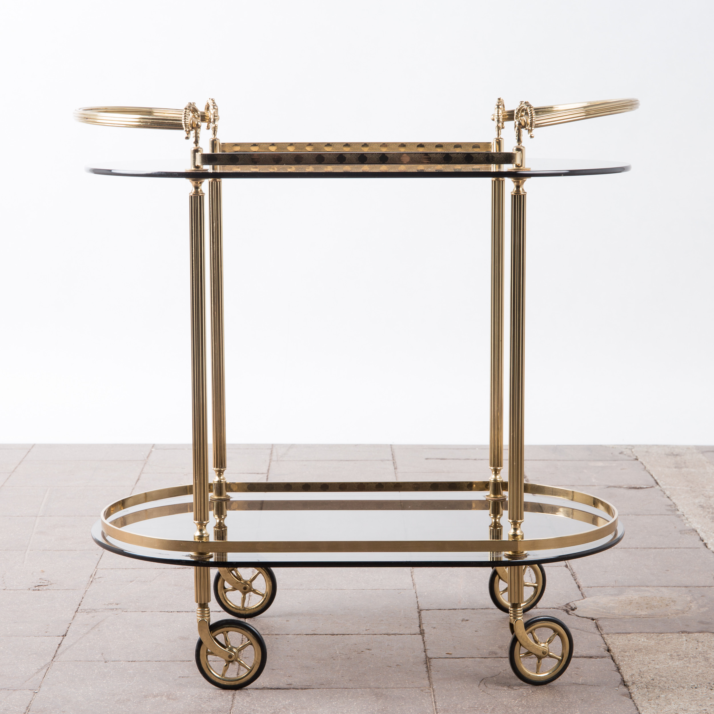 1720543. Barvogn / serveringsvogn, messing, røget glas.