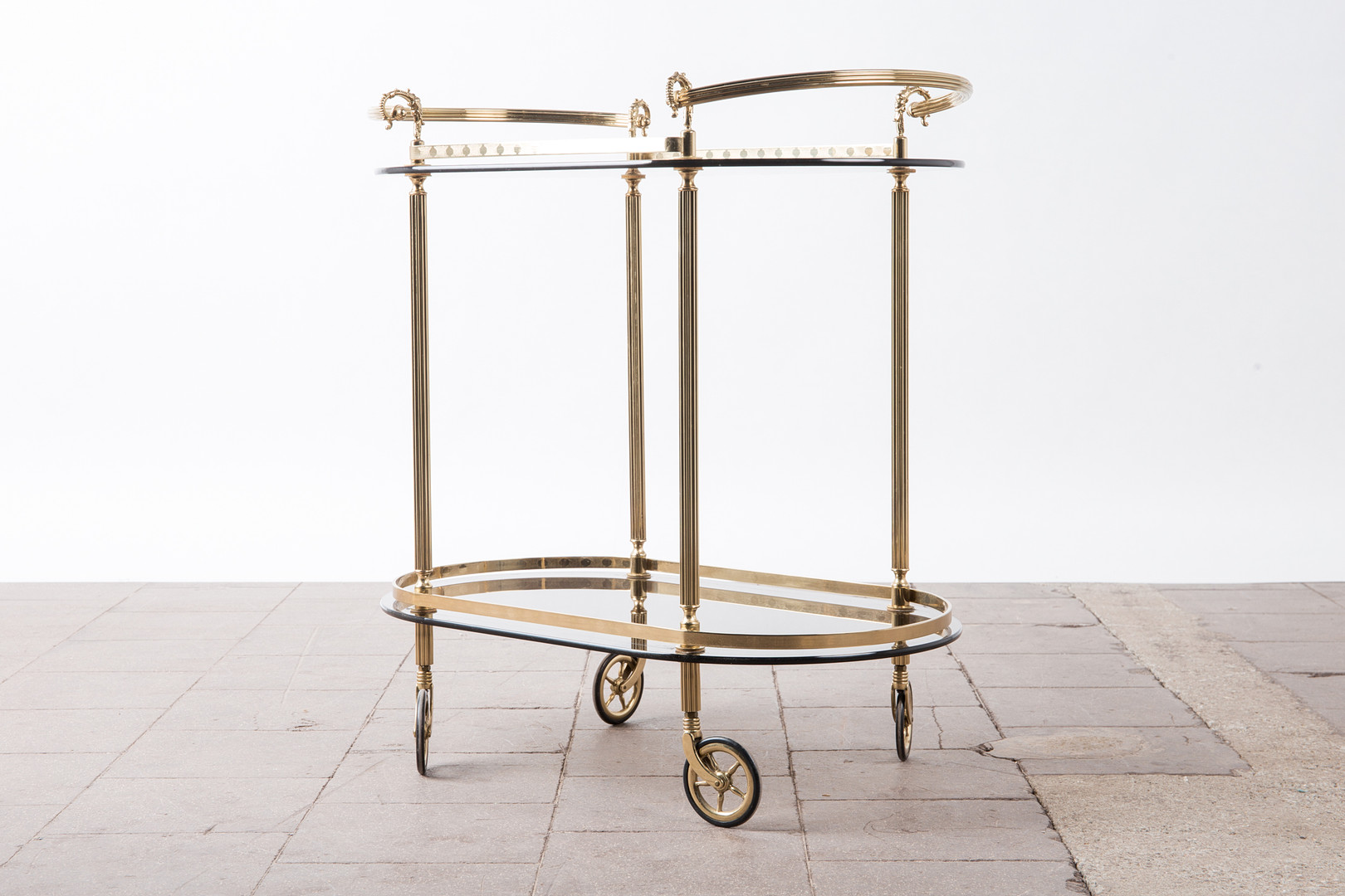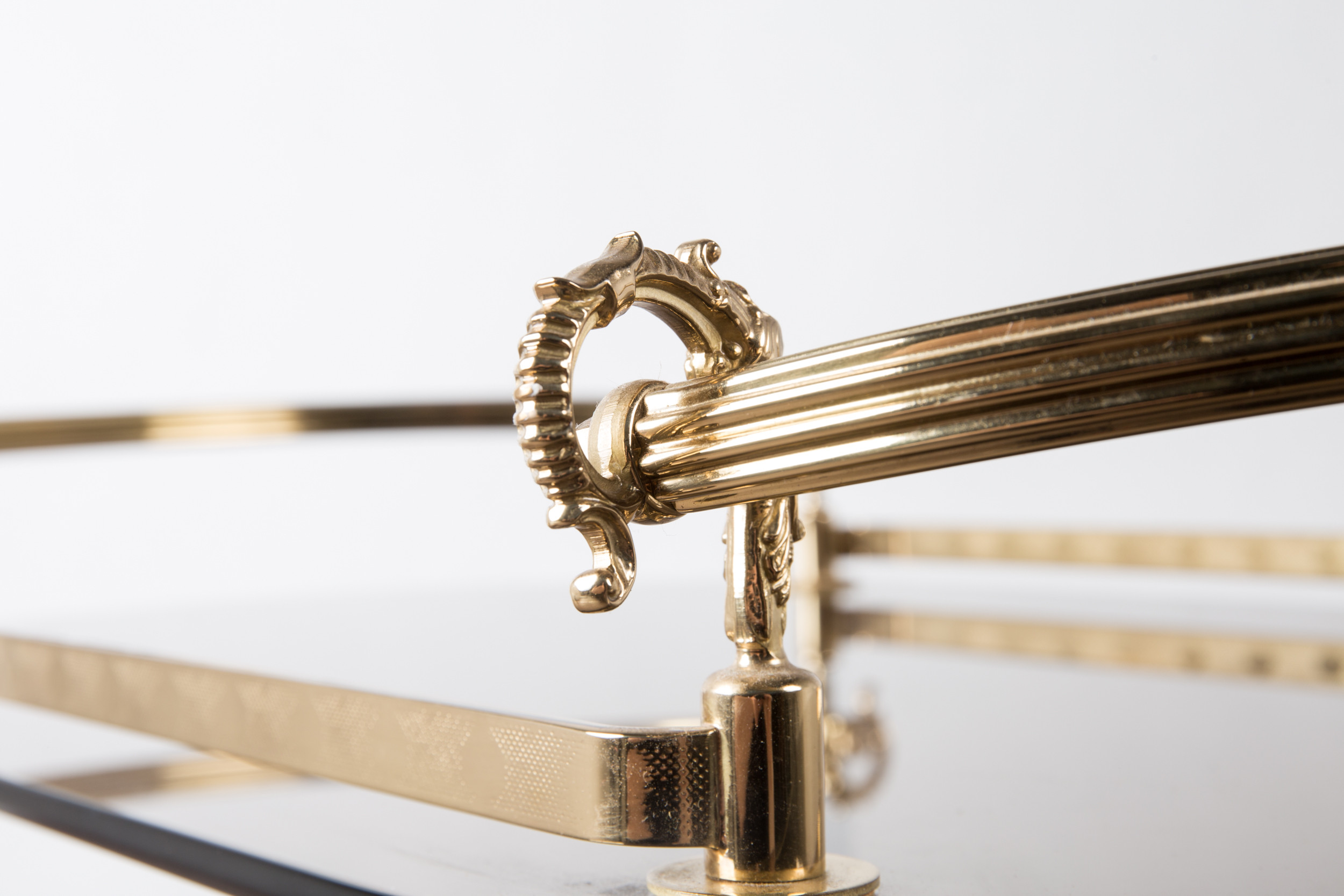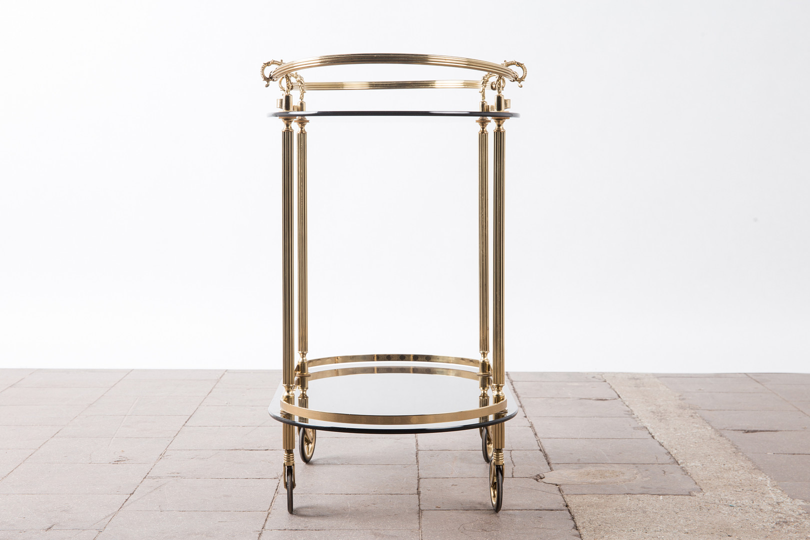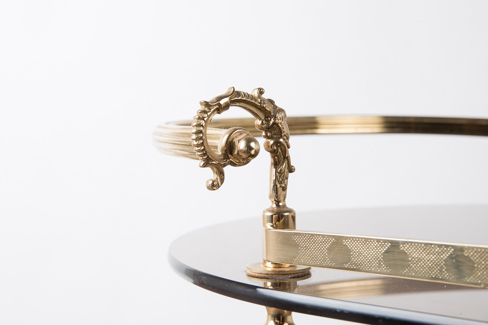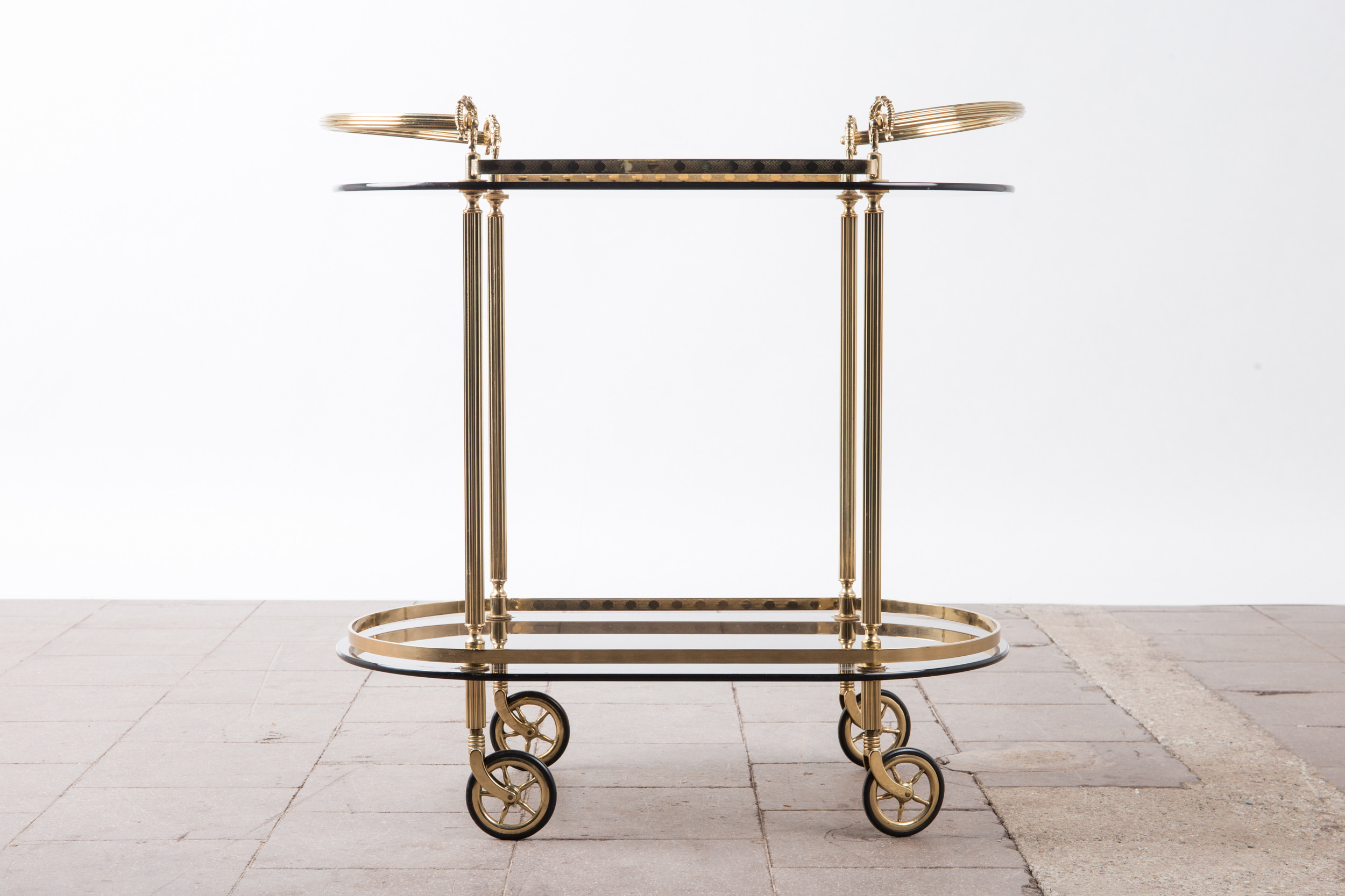 1720543. Barvogn / serveringsvogn, messing, røget glas.
