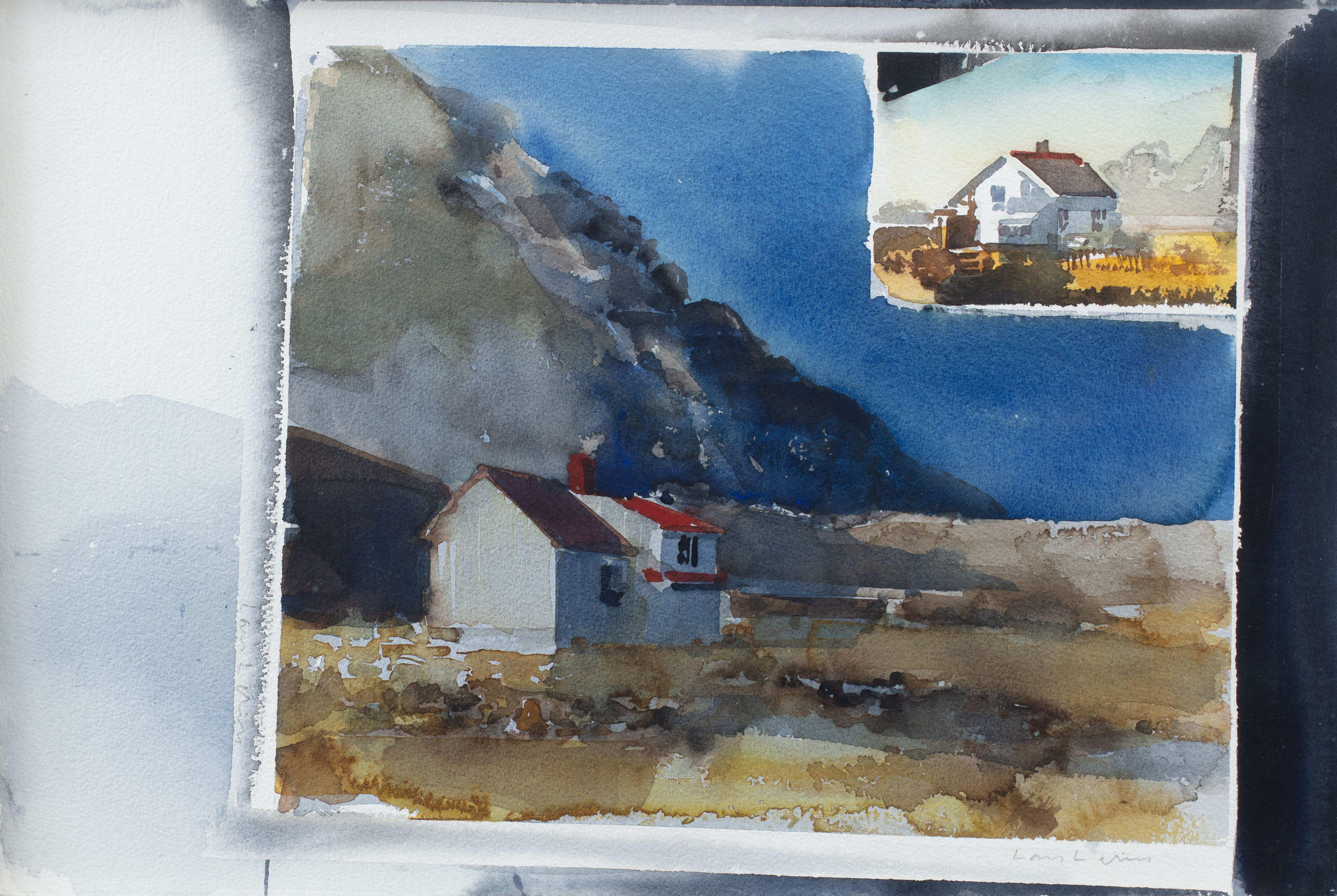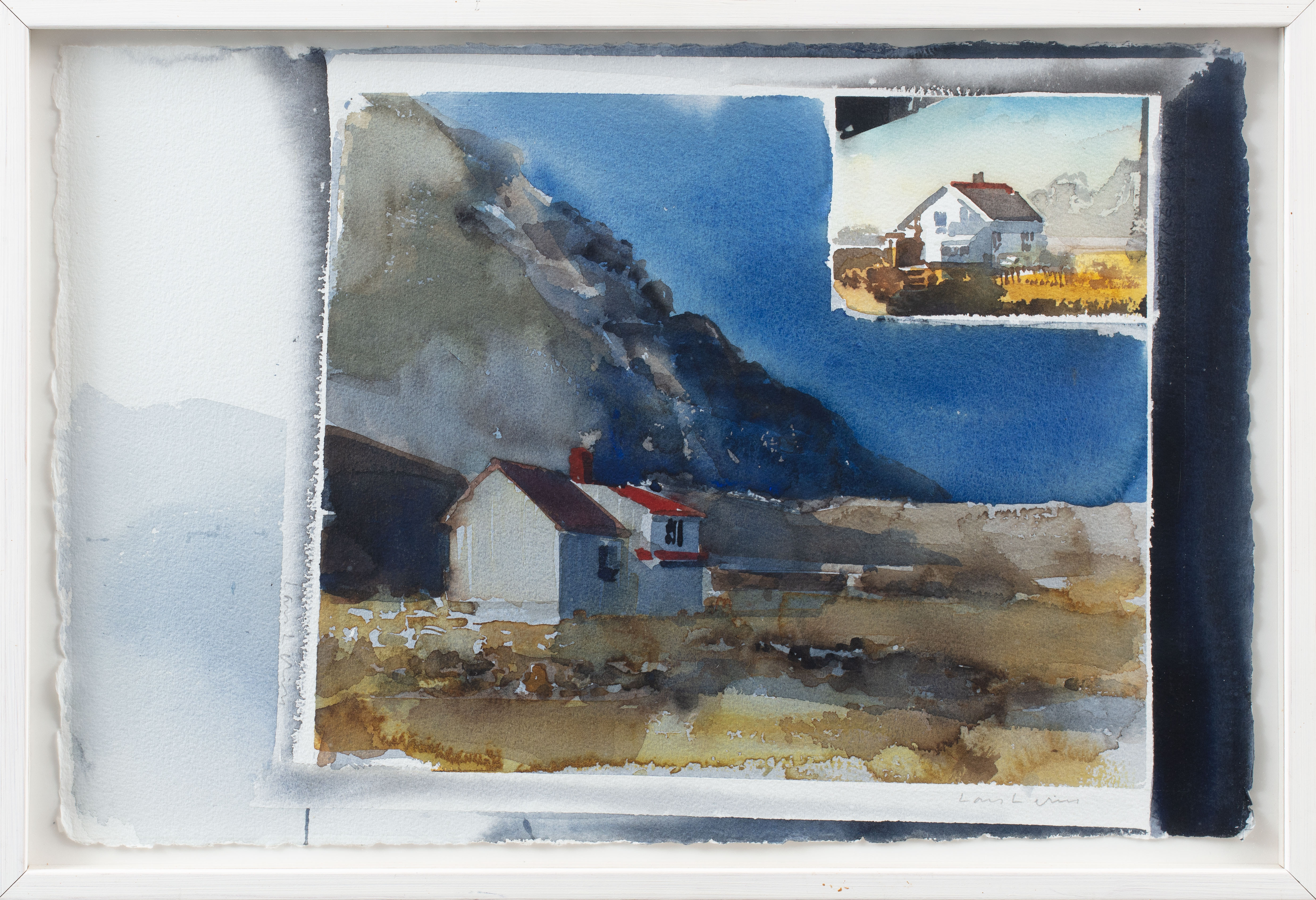 61. 1722164. LARS LERIN. Hus på en bjergskråning. Akvarel.