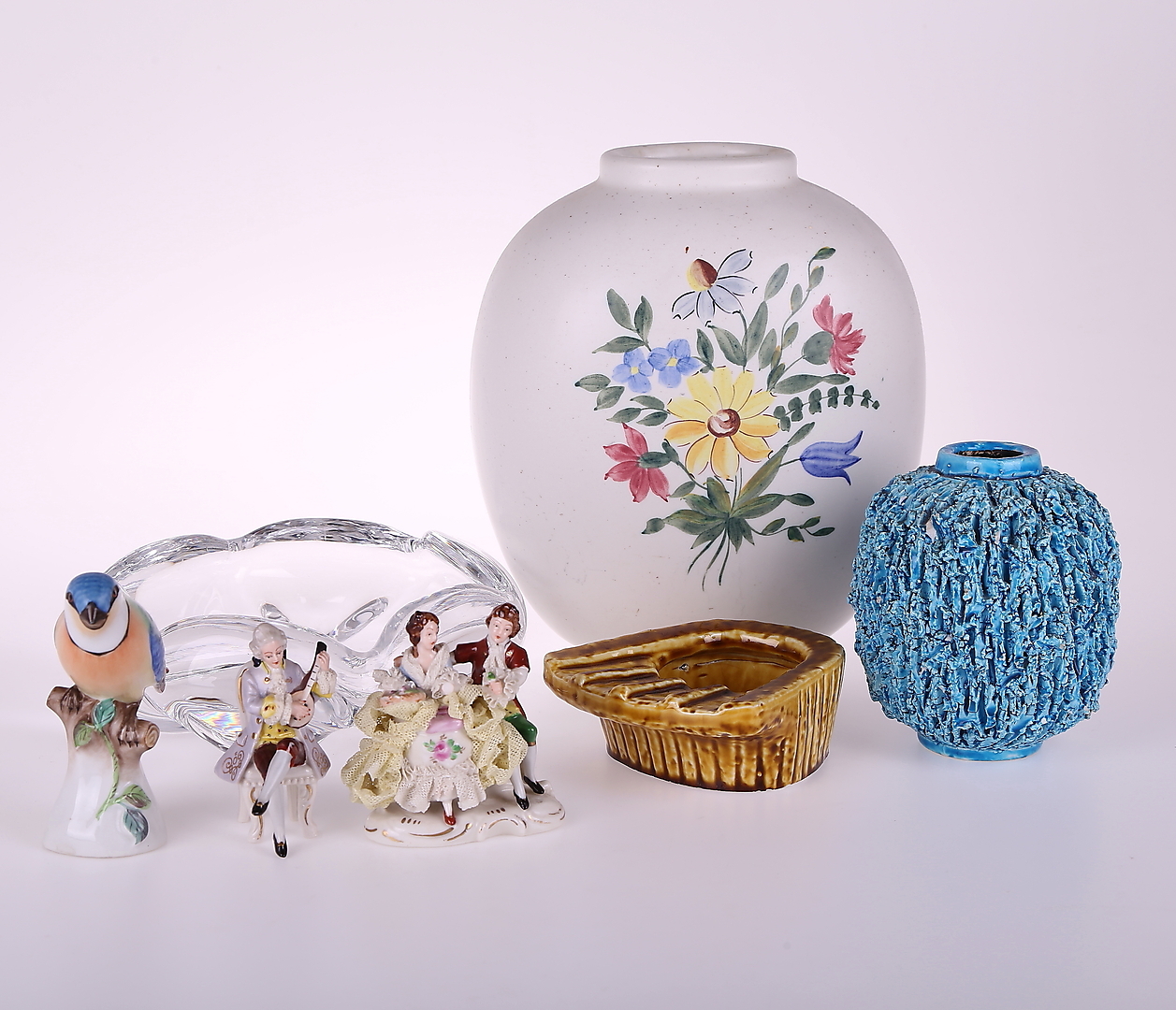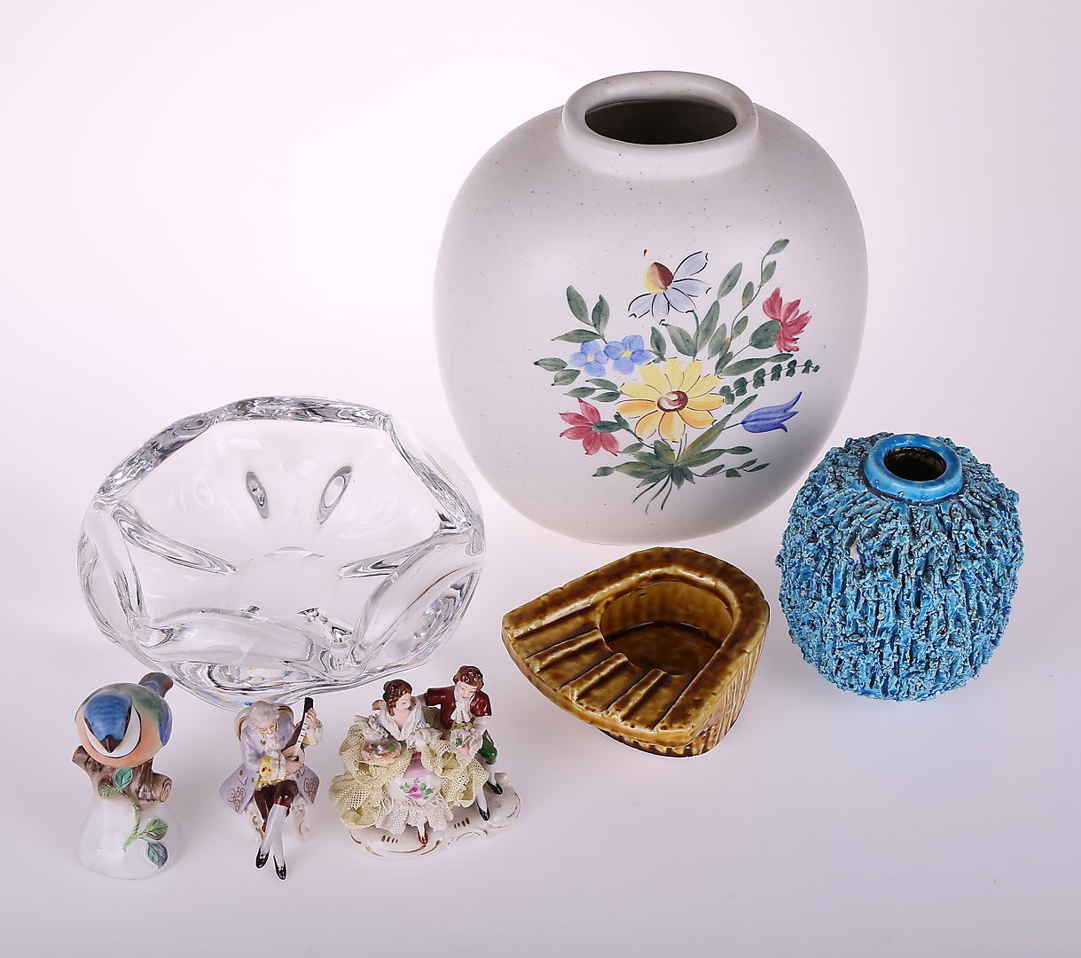172269. KERAMISKE / PORCELENGENSTANDE + GLAS OBJEKTER: syv styk.