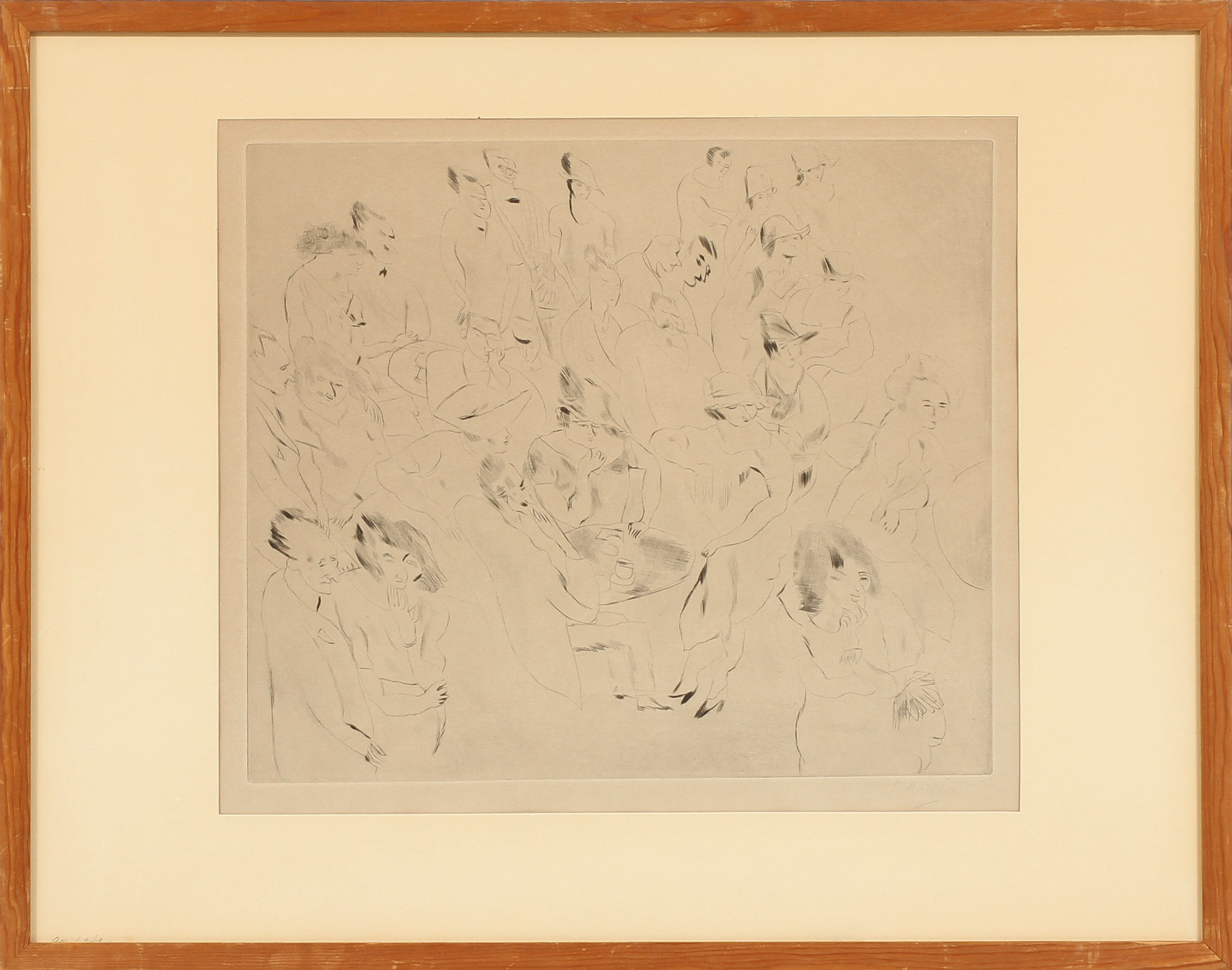 172383. OIDENTIFIERAD KONSTNÄR. "Au Café", tør nål, signeret.