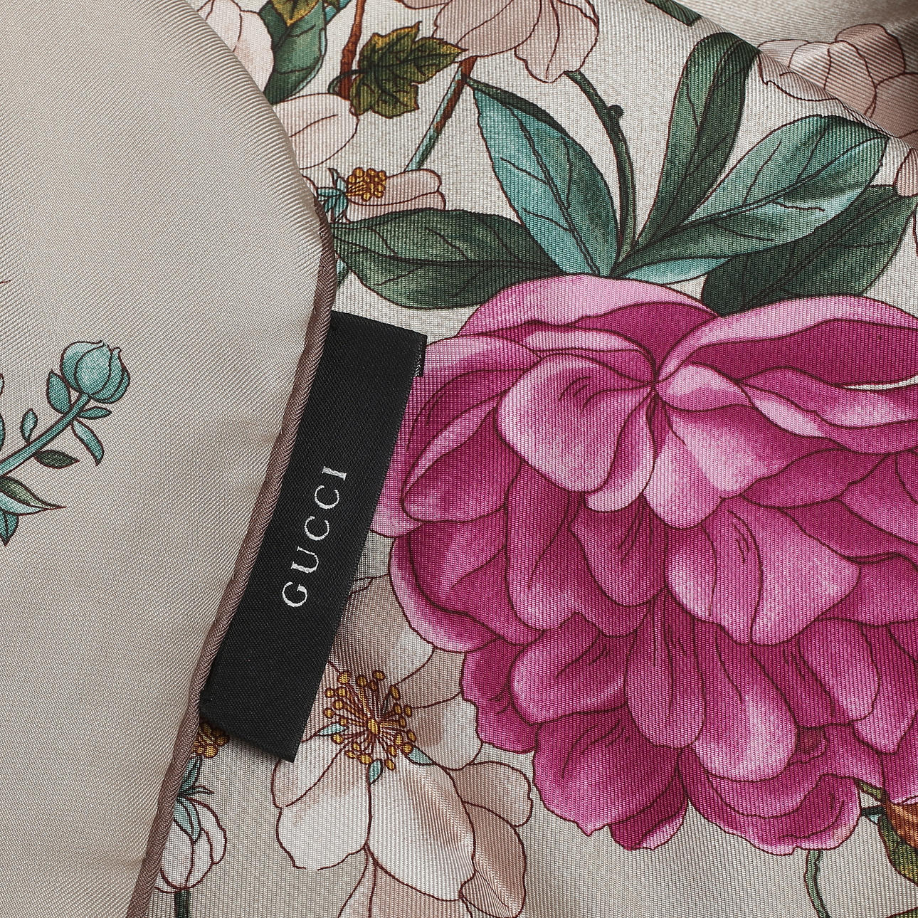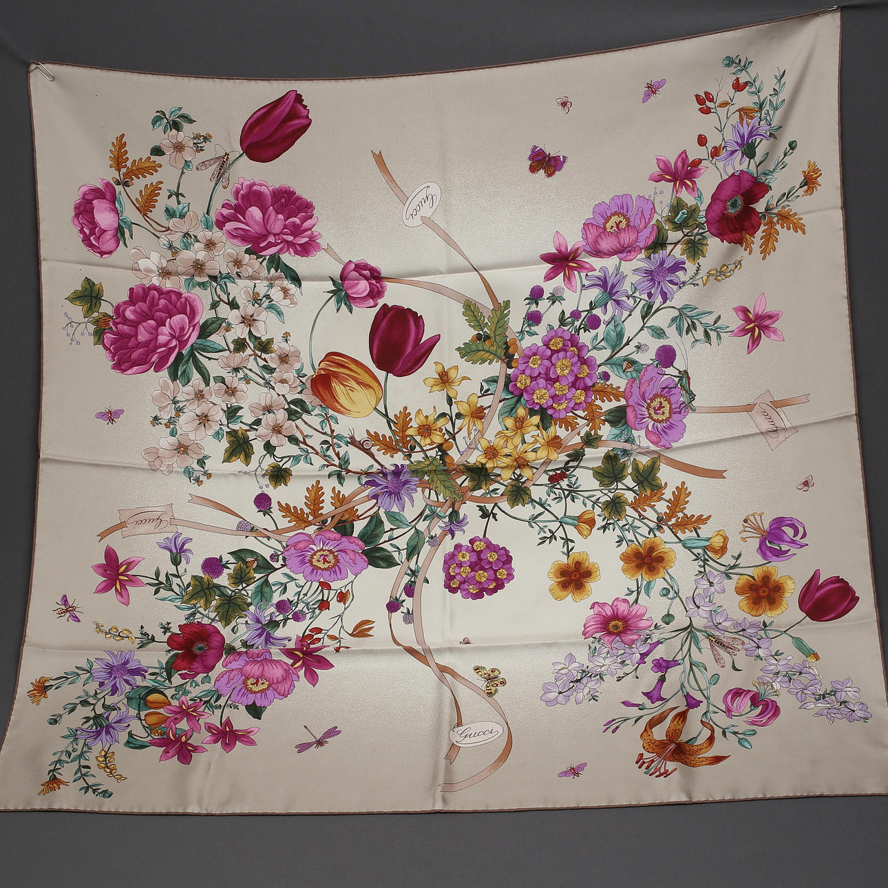 GUCCI. Tørklæde, silke og ask.