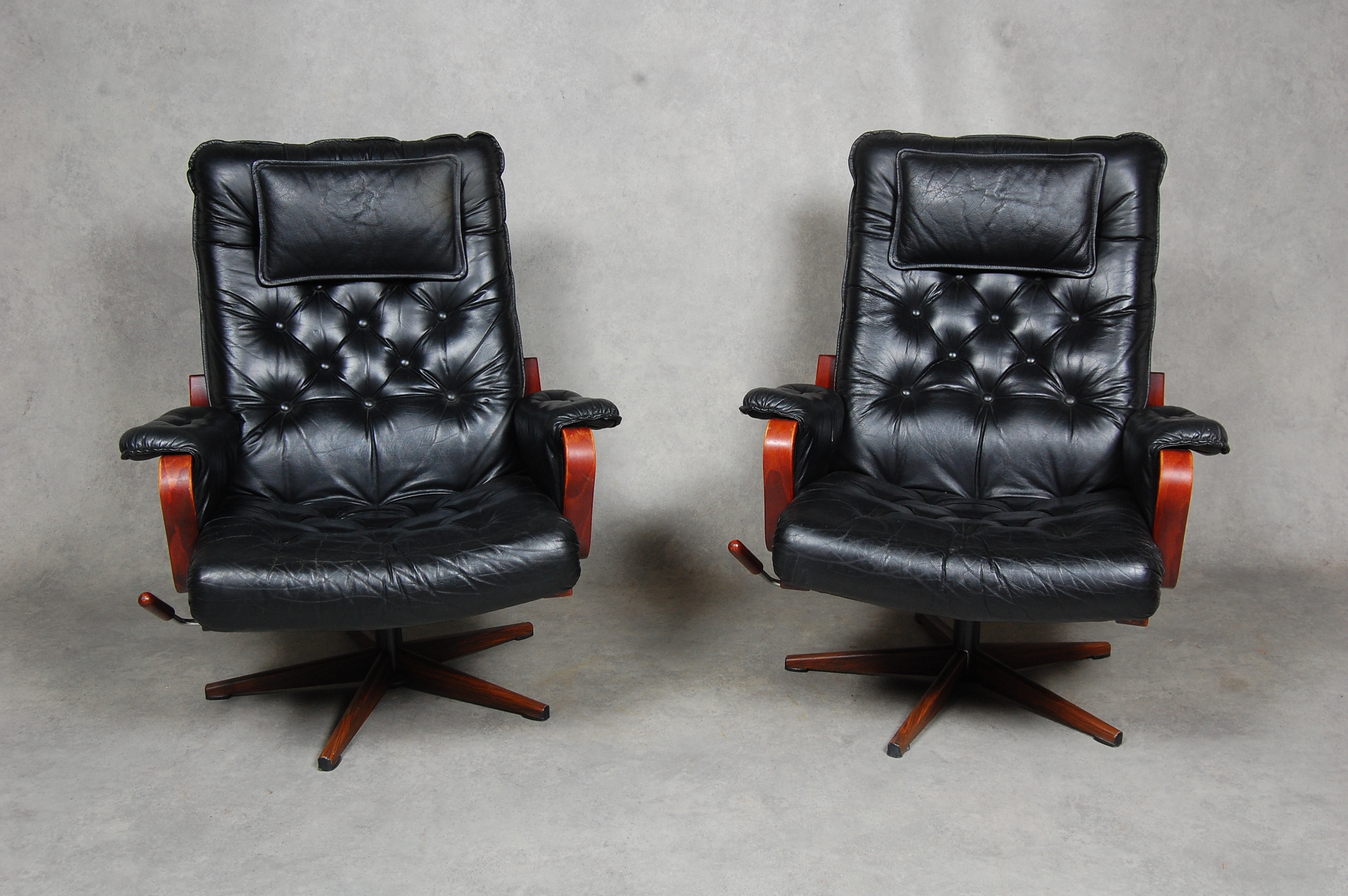 172841. LÆNESTOLE, 1 par, læder, 1970'erne.