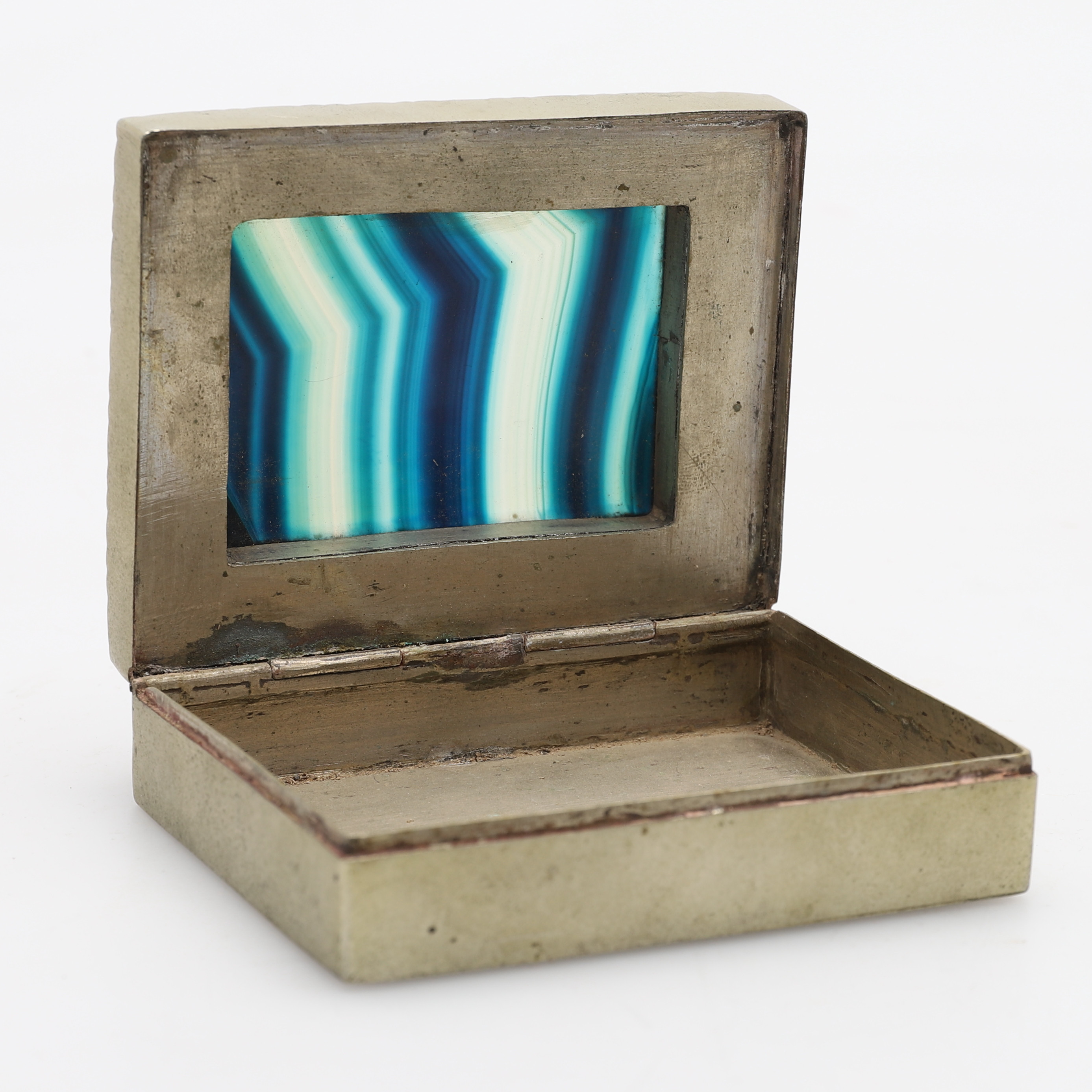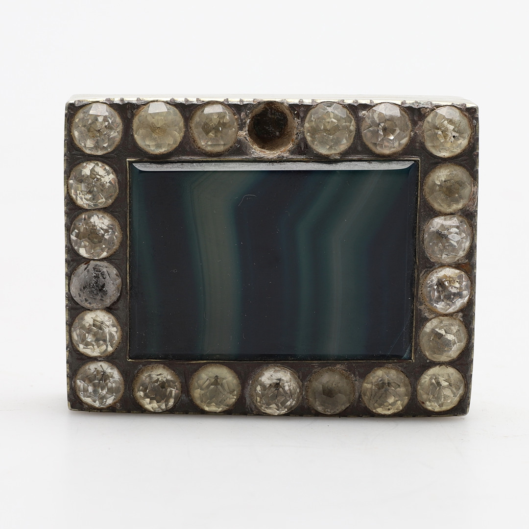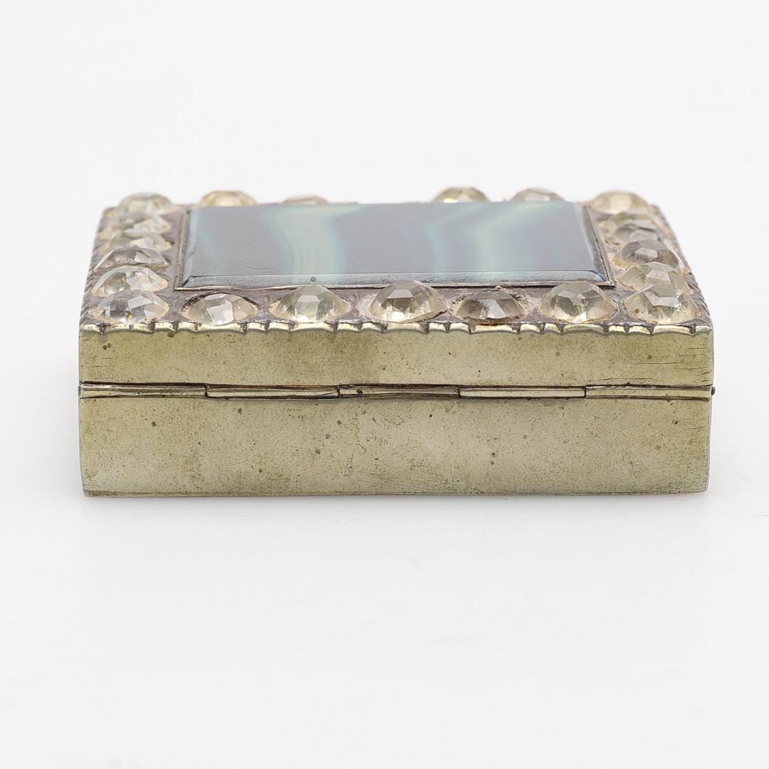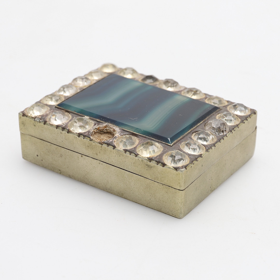 1728492. EN KLÆDET AGAT OG PASTA METAL HÆNGSLET ÆSKE.