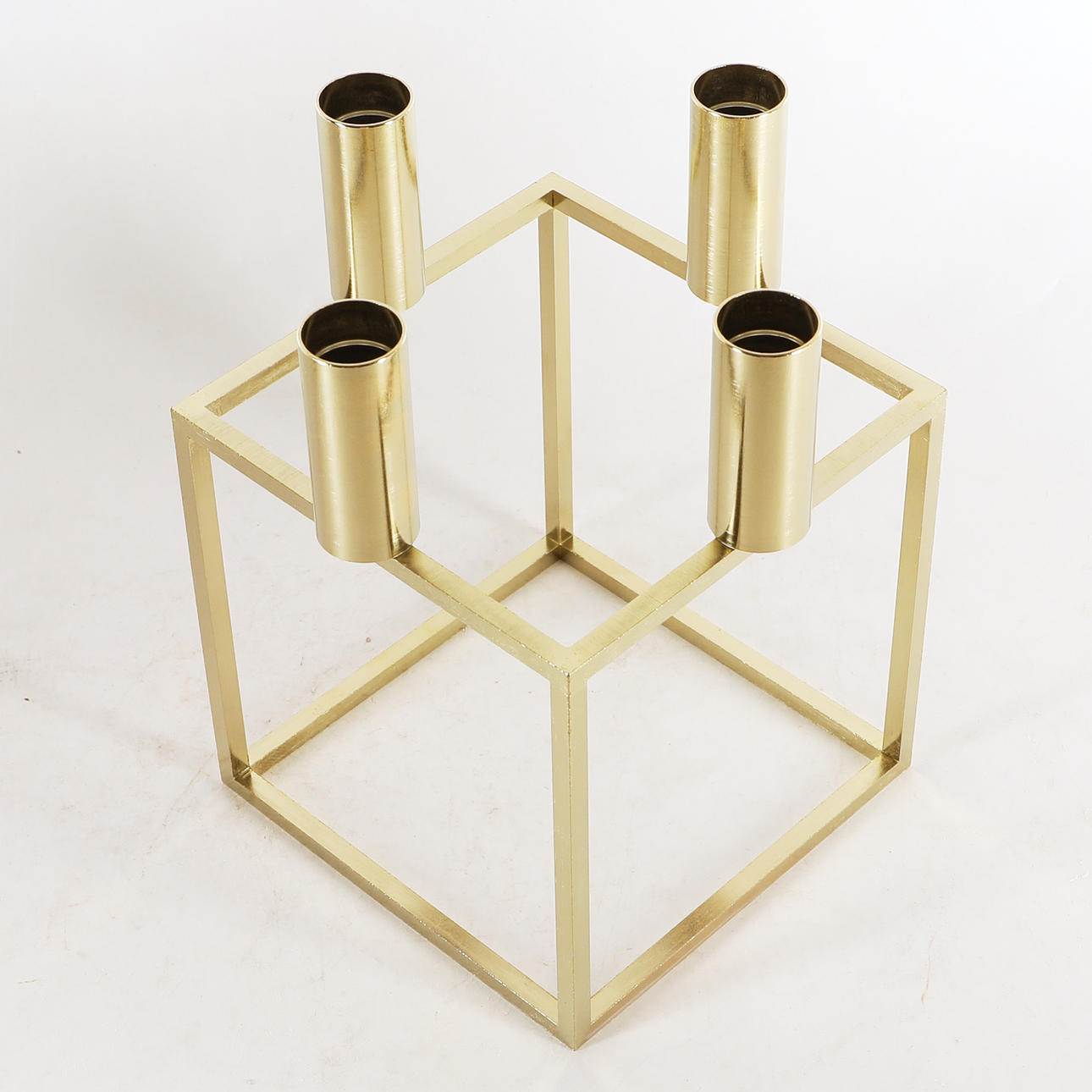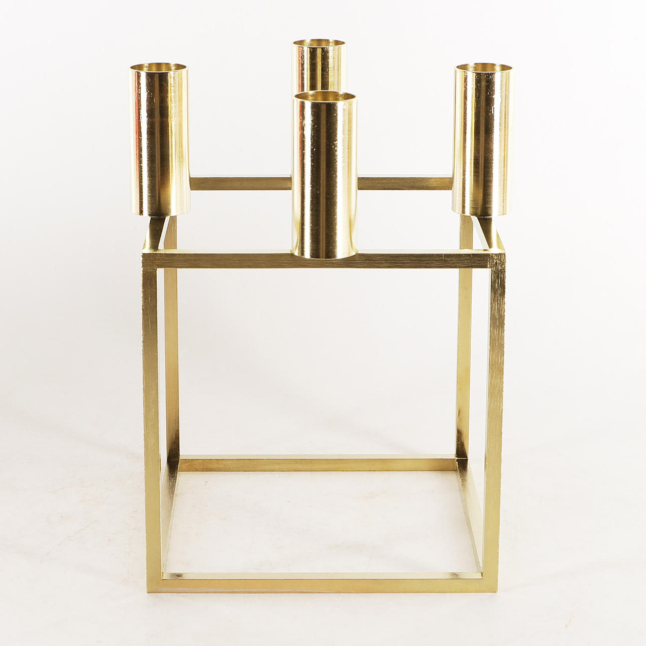 Til 4 stearinlys, messing, mærket "By Lassen", højde ca 20, 16x16 cm.