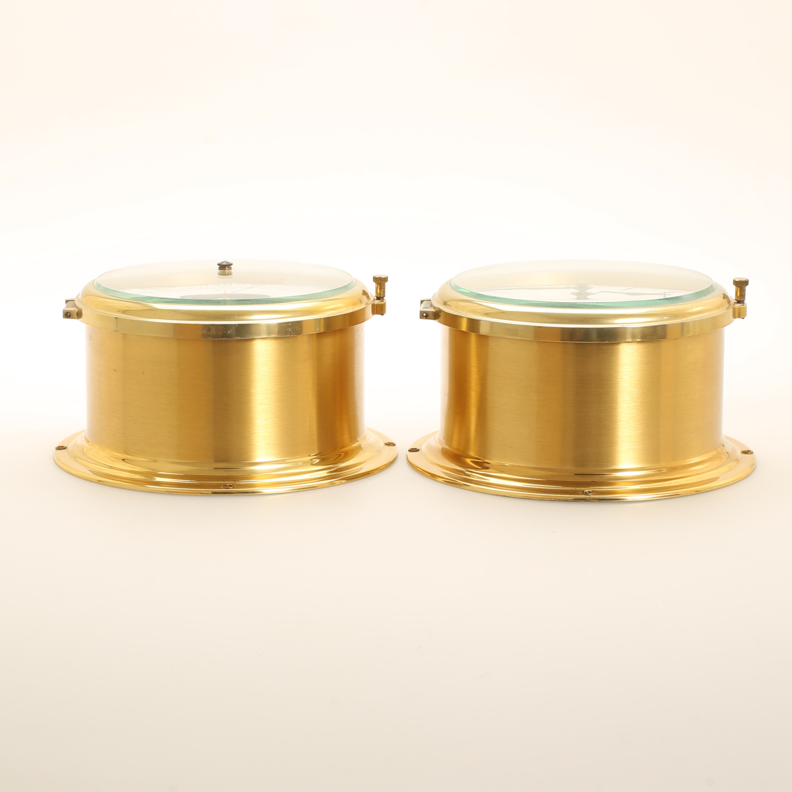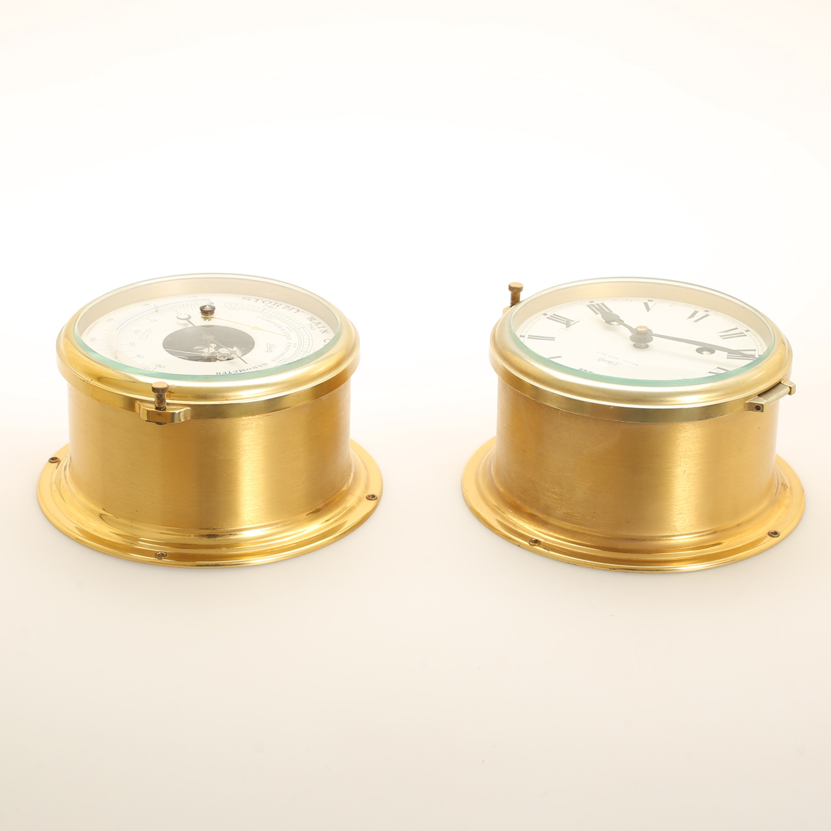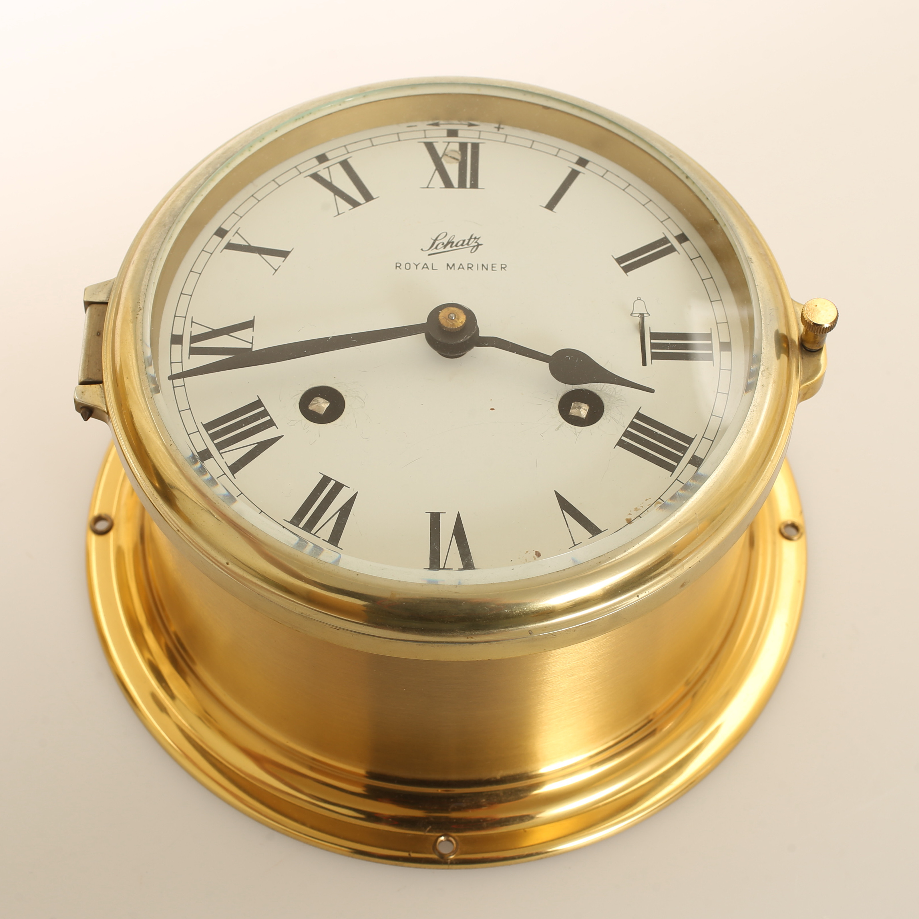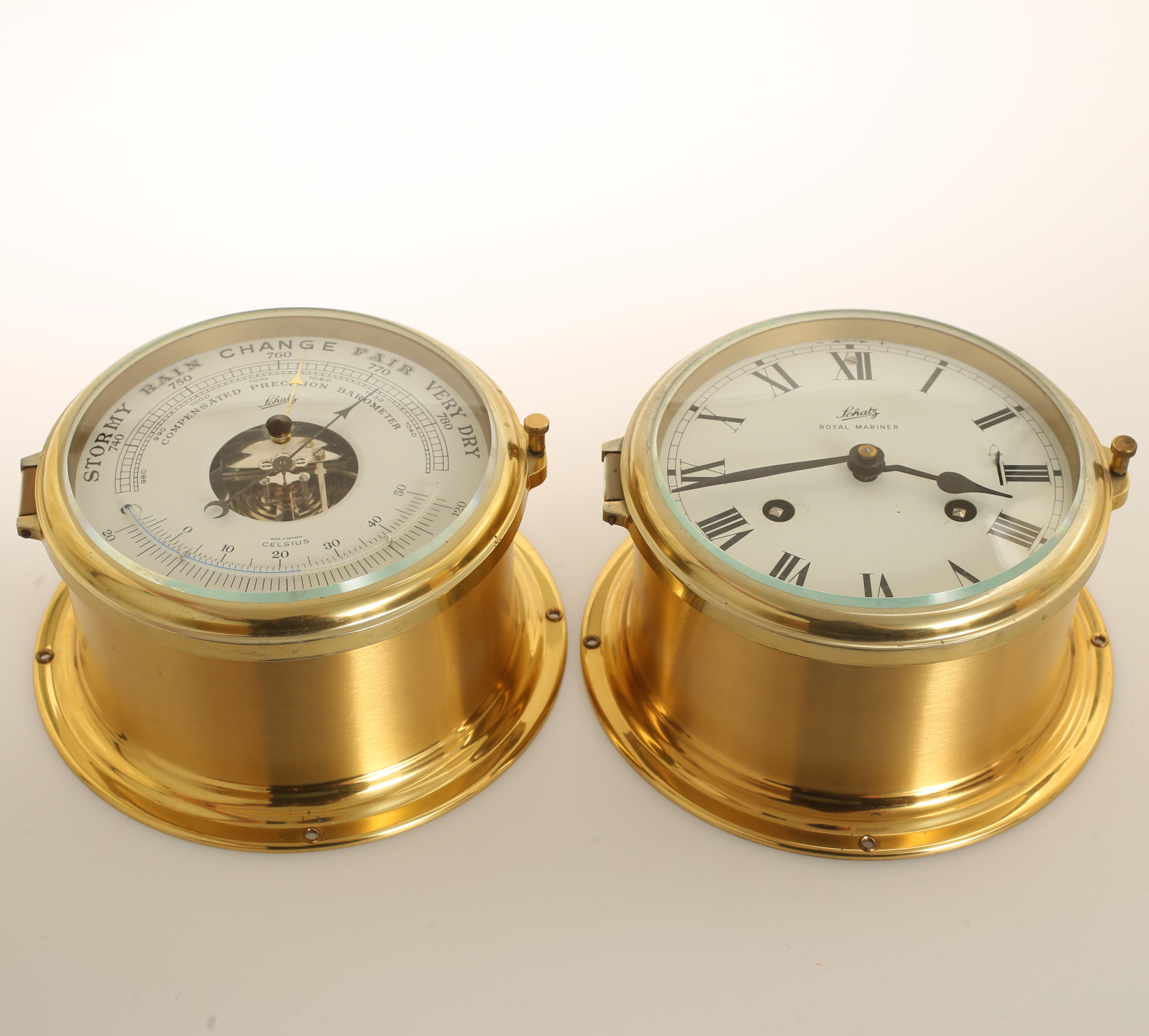 1736568. SKIBSBAROMETER og UR, messing, Schatz.