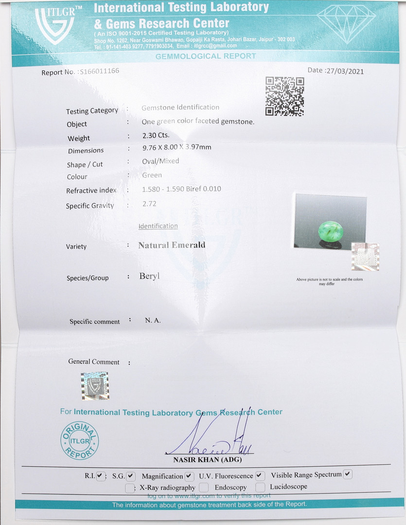 1737990. EMERALD, oval blandet snit, 2,30 ct.