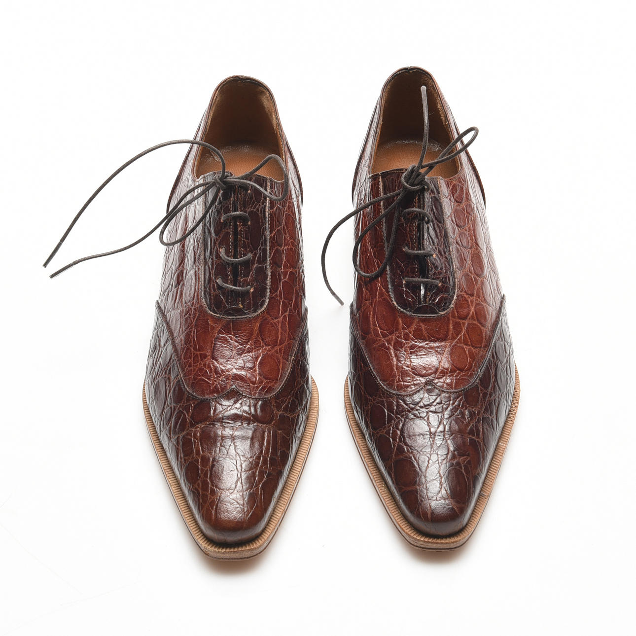 Emporio Armani sko, damesko, snøresko i brunt præget læder, str. 39,5.