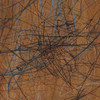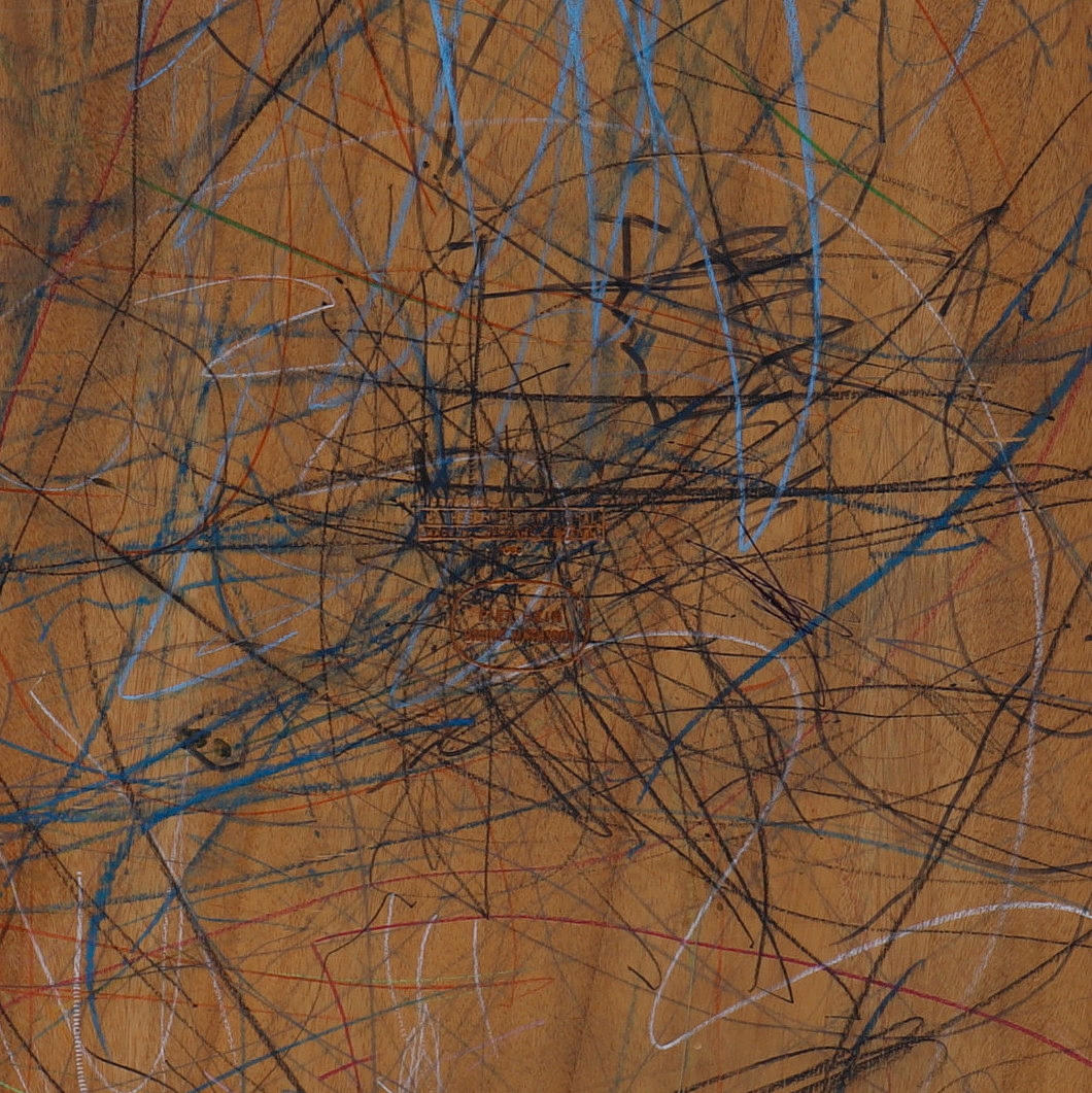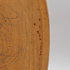 Pletter og ridser i skive, underside med omfattende slitage og pletter/maling.