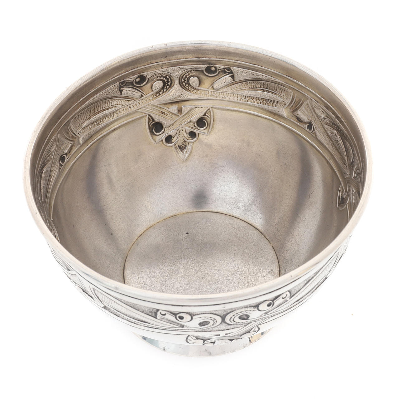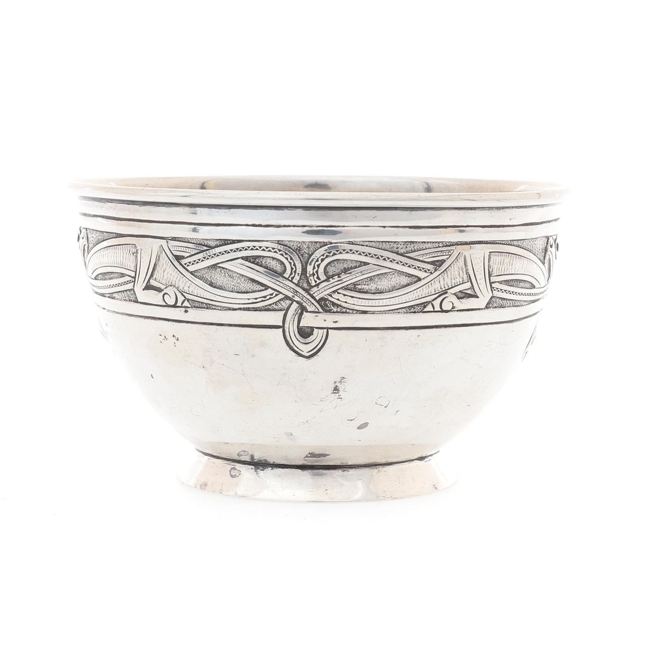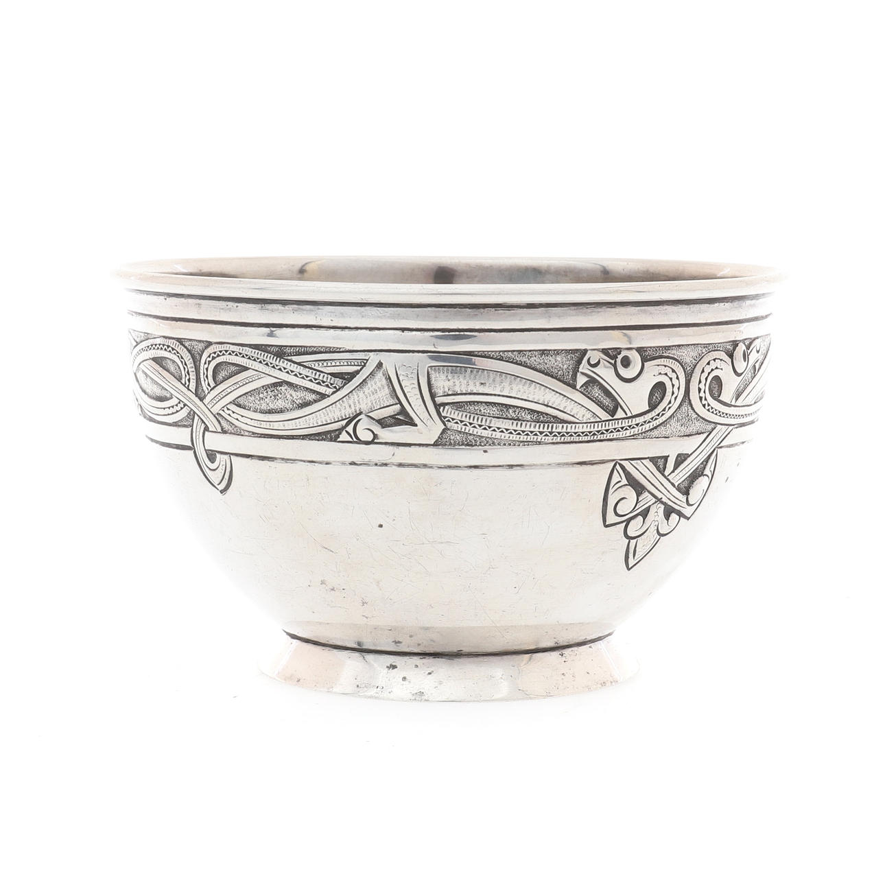 RALie, præget i jugendstil med en øvre frise af fire sammenflettede drager, 11,5 cm diameter x 7 cm høj, 131,8 g, 4,23 ozs.