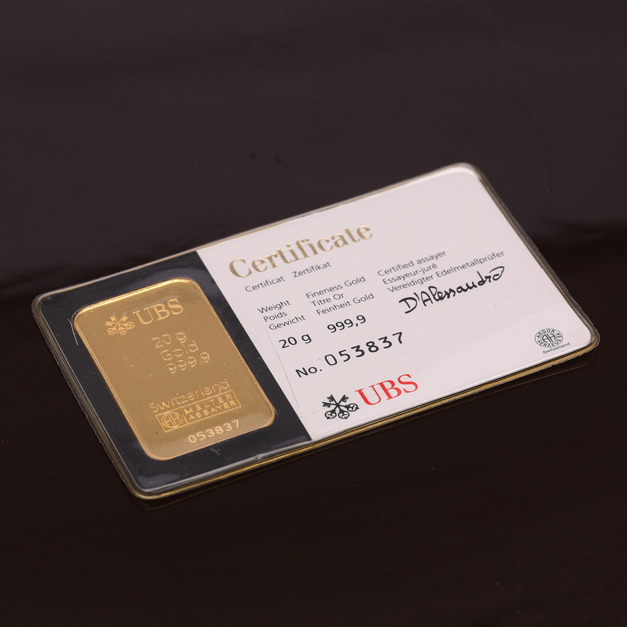 GULDBAR, 24k, 20 gram, UBS, Schweiz.