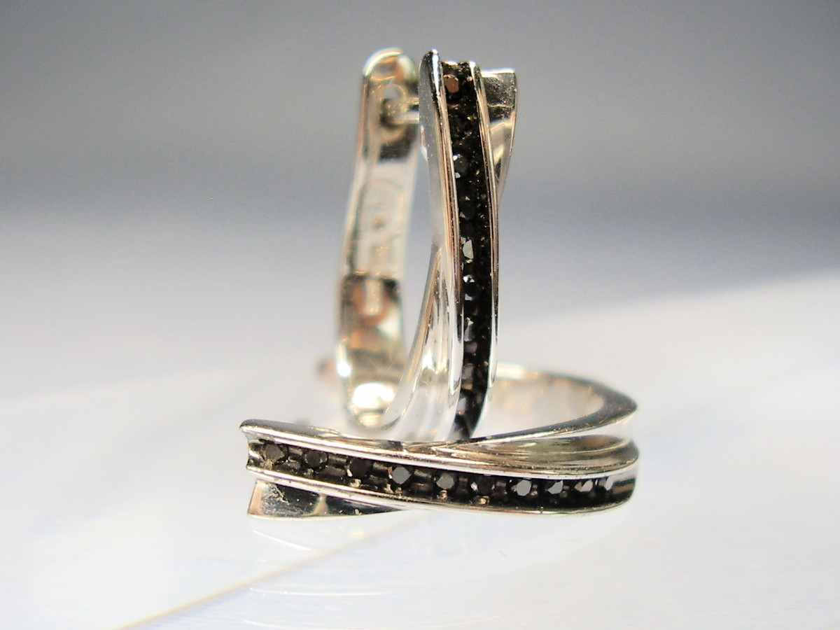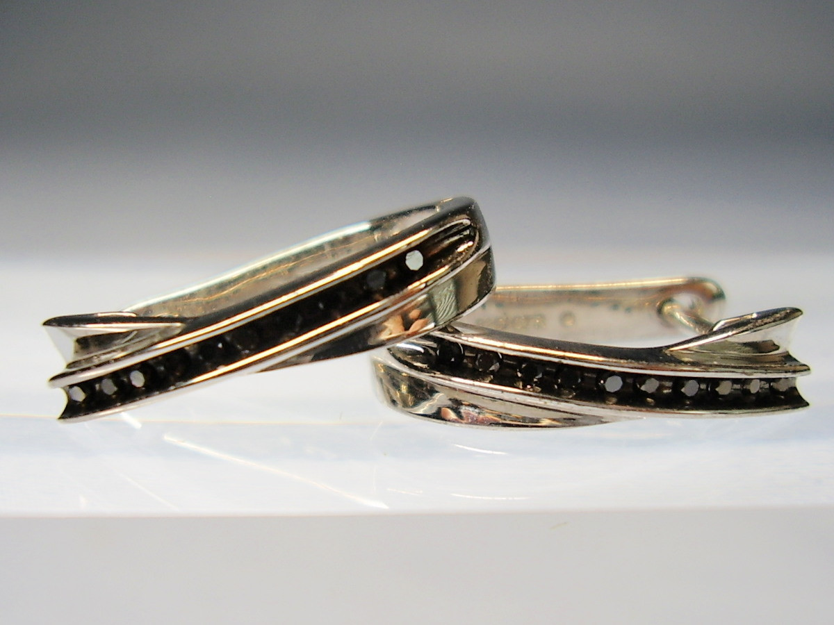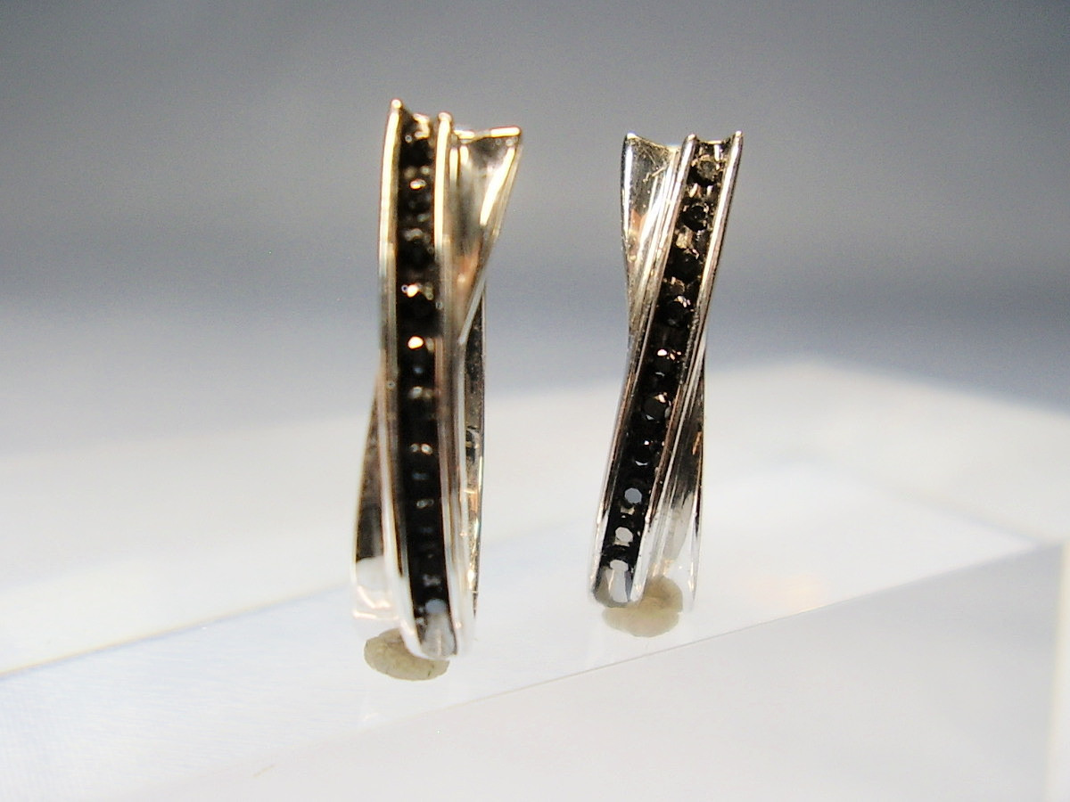 1753266. SORT DIAMOND HOOP ØRERINGE SØLV.