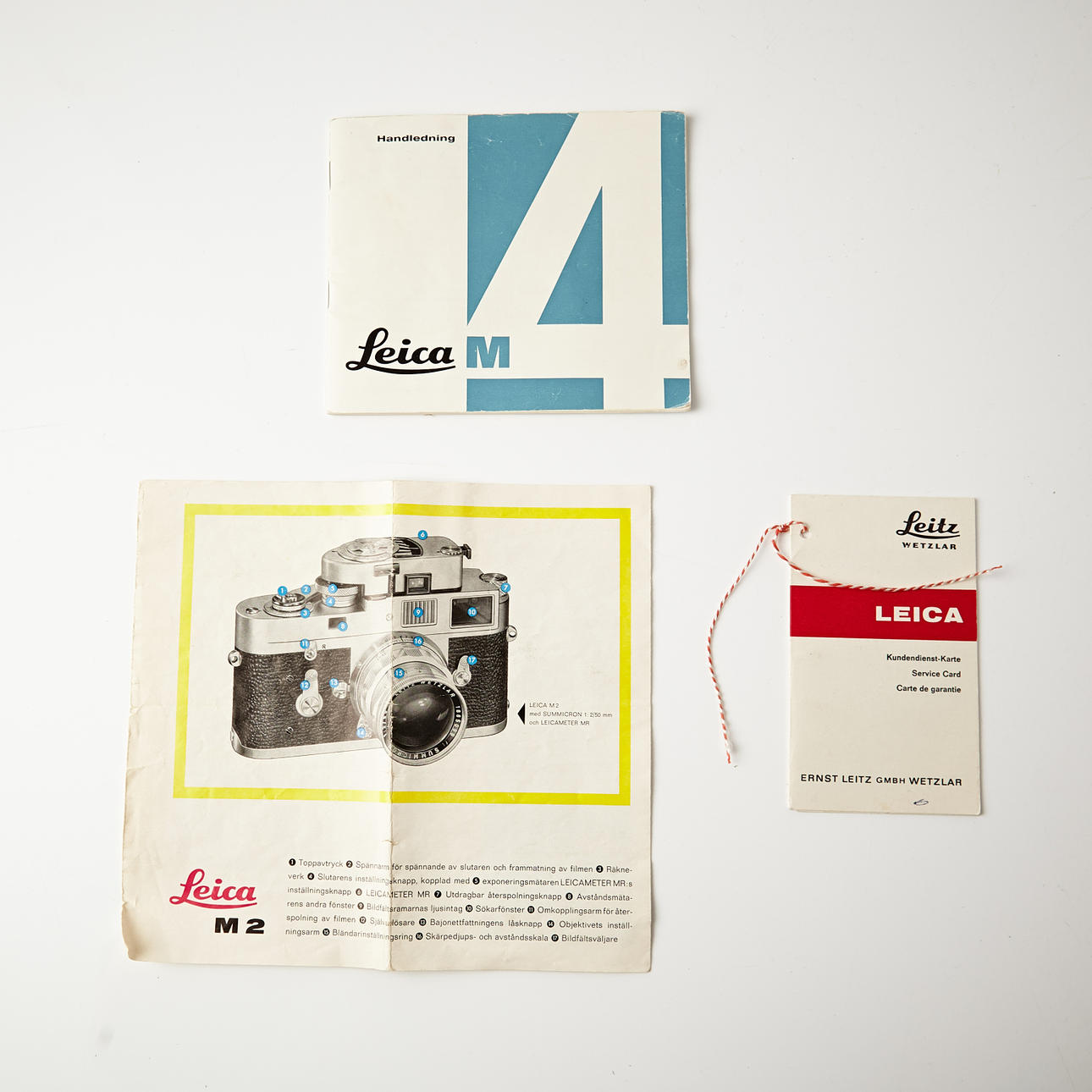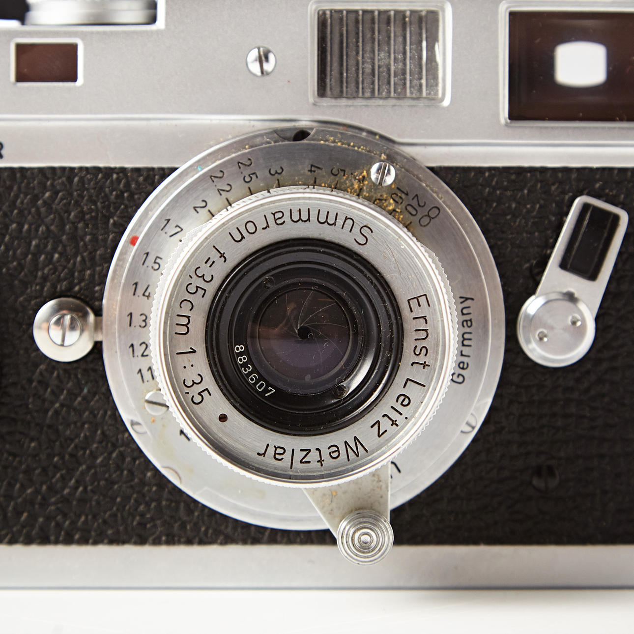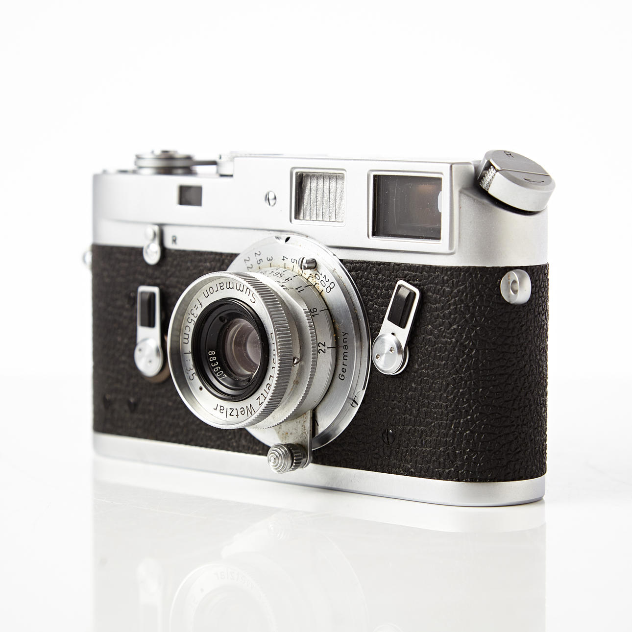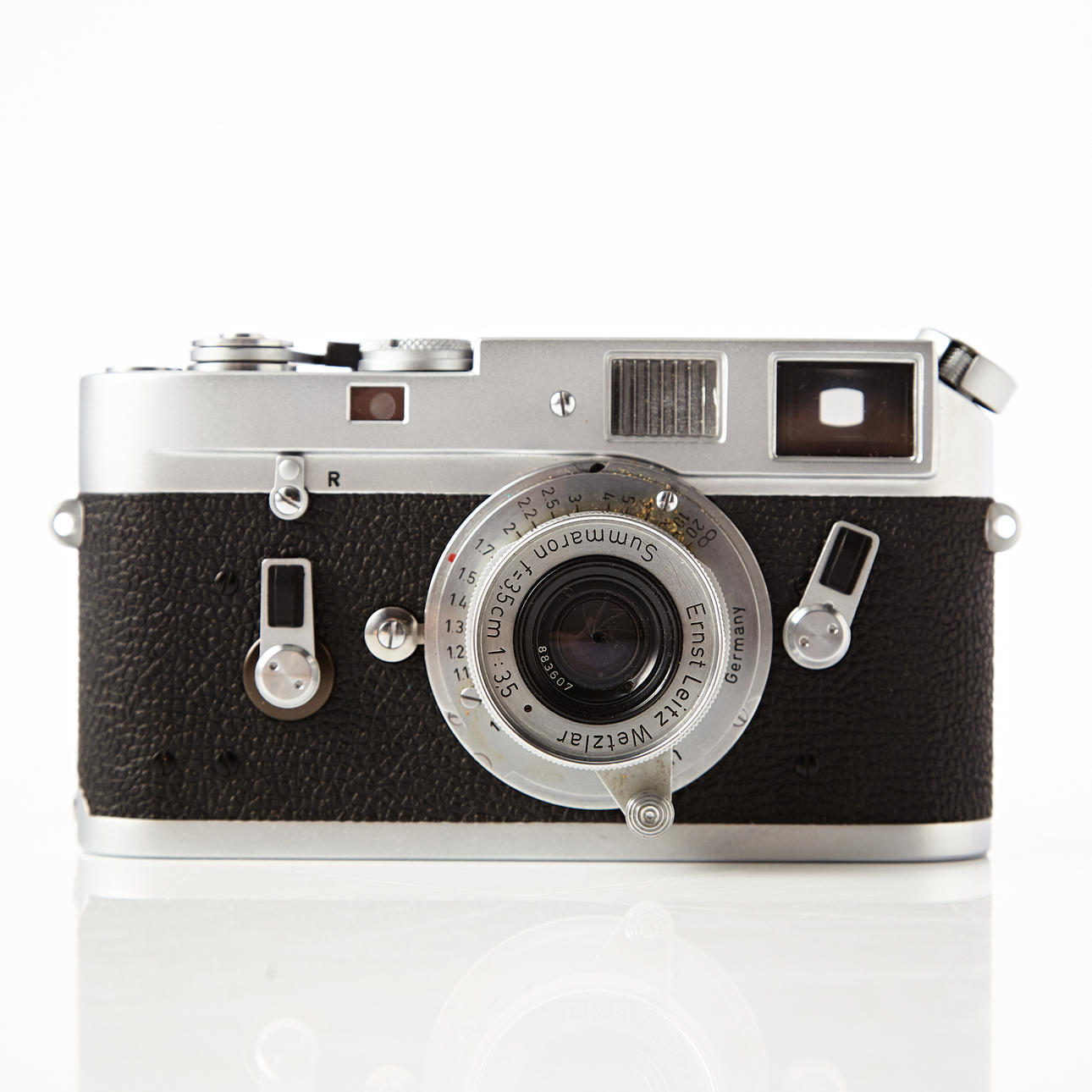 Objektiv Ernst Leitz Wetzlar, Summaron f-3,5 cm 1:35, inkluderet lysmåler Leica, flash Zeiss Icon, 4 lysfiltre Franke & Heidecke.