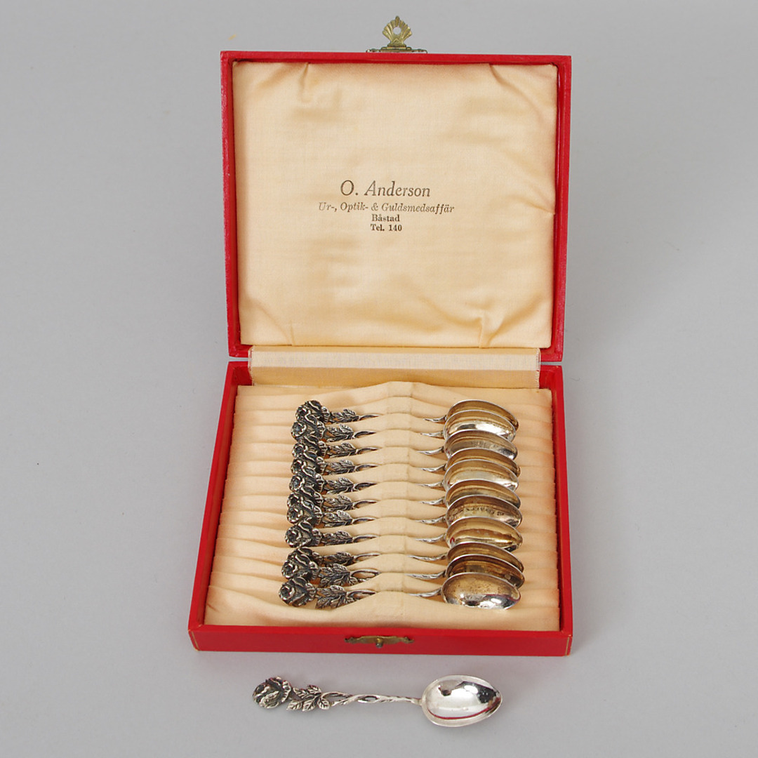 176519. MOCKA SKEJER, 12 stk. i etui, "Rosen", sølv.