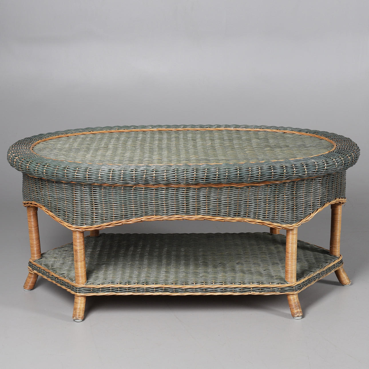 nyligt fremstillet, oval top forenet af et sekskantet underlag, 43 cm høj x 100 cm bred x 60 cm dyb.