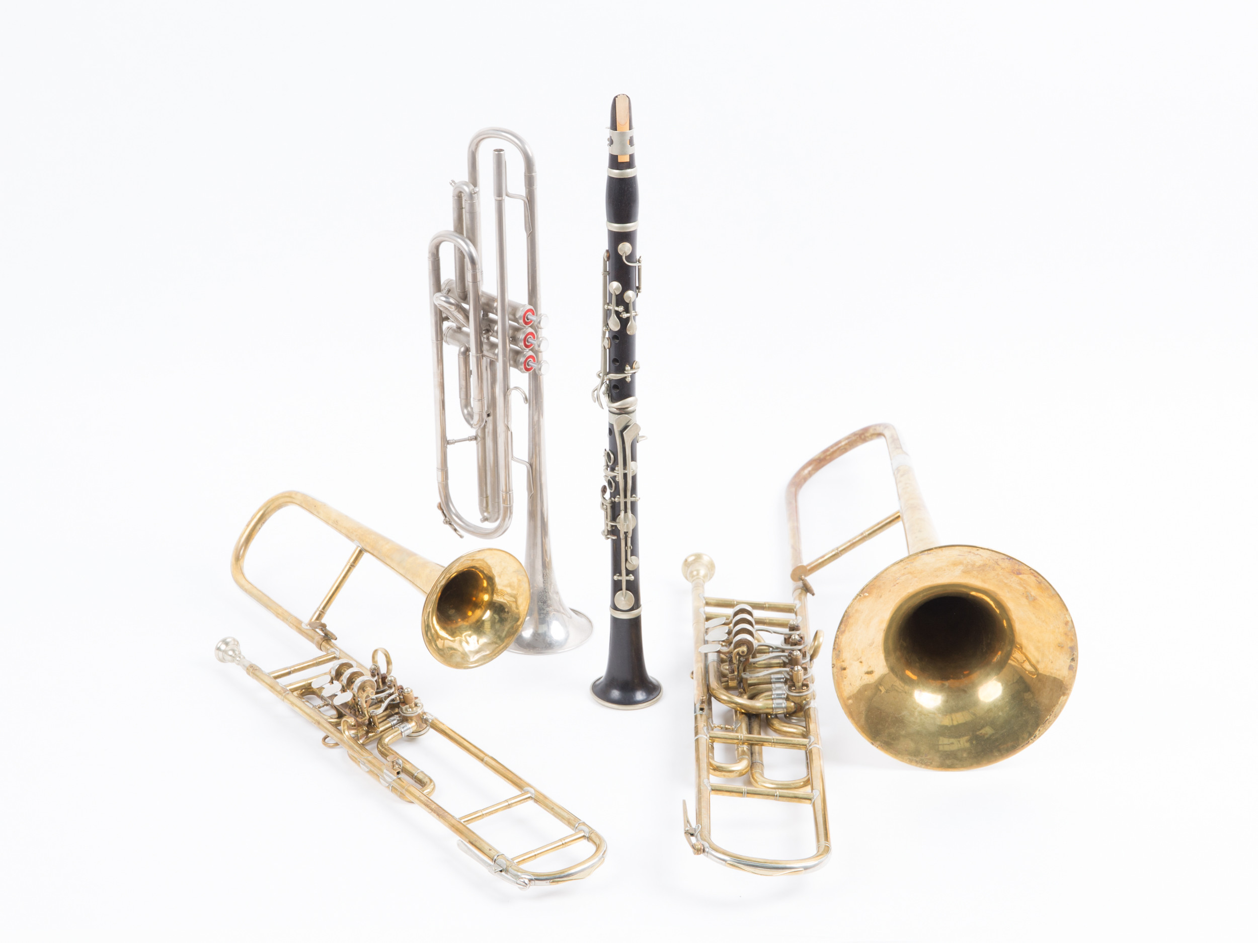 1774543. Fire blæseinstrumenter, messing, stål, træ, Köln (4).
