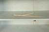 Brugsspor, delvise stød og slid. Sorte mærker stedvis på hyldefladerne.