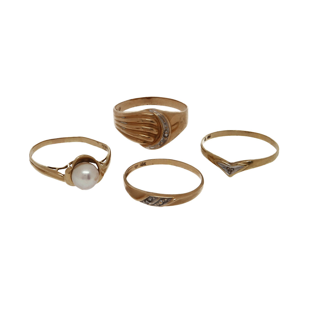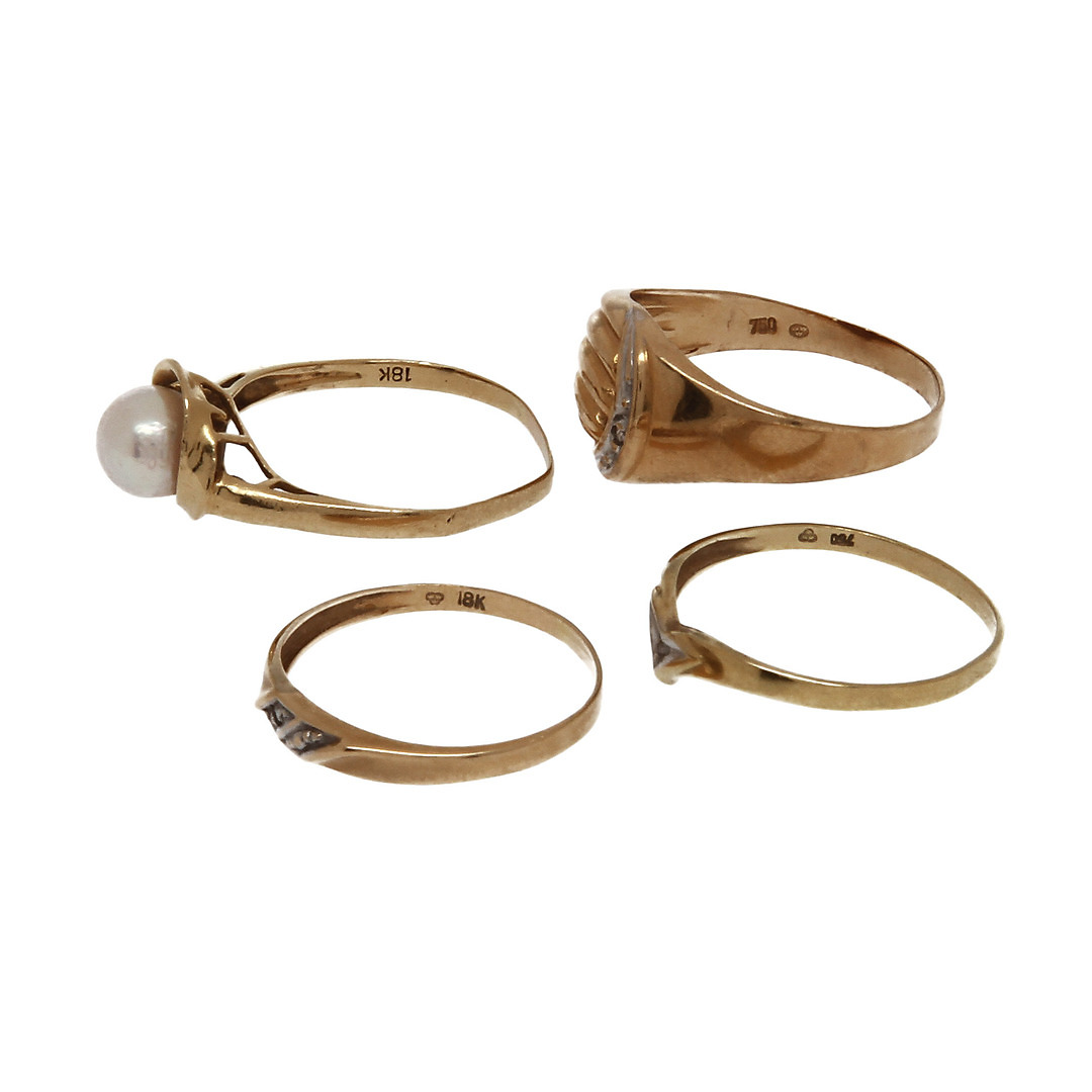 177671. RINGE, 4 stk, 18 K guld. Samlet vægt 4 gram.