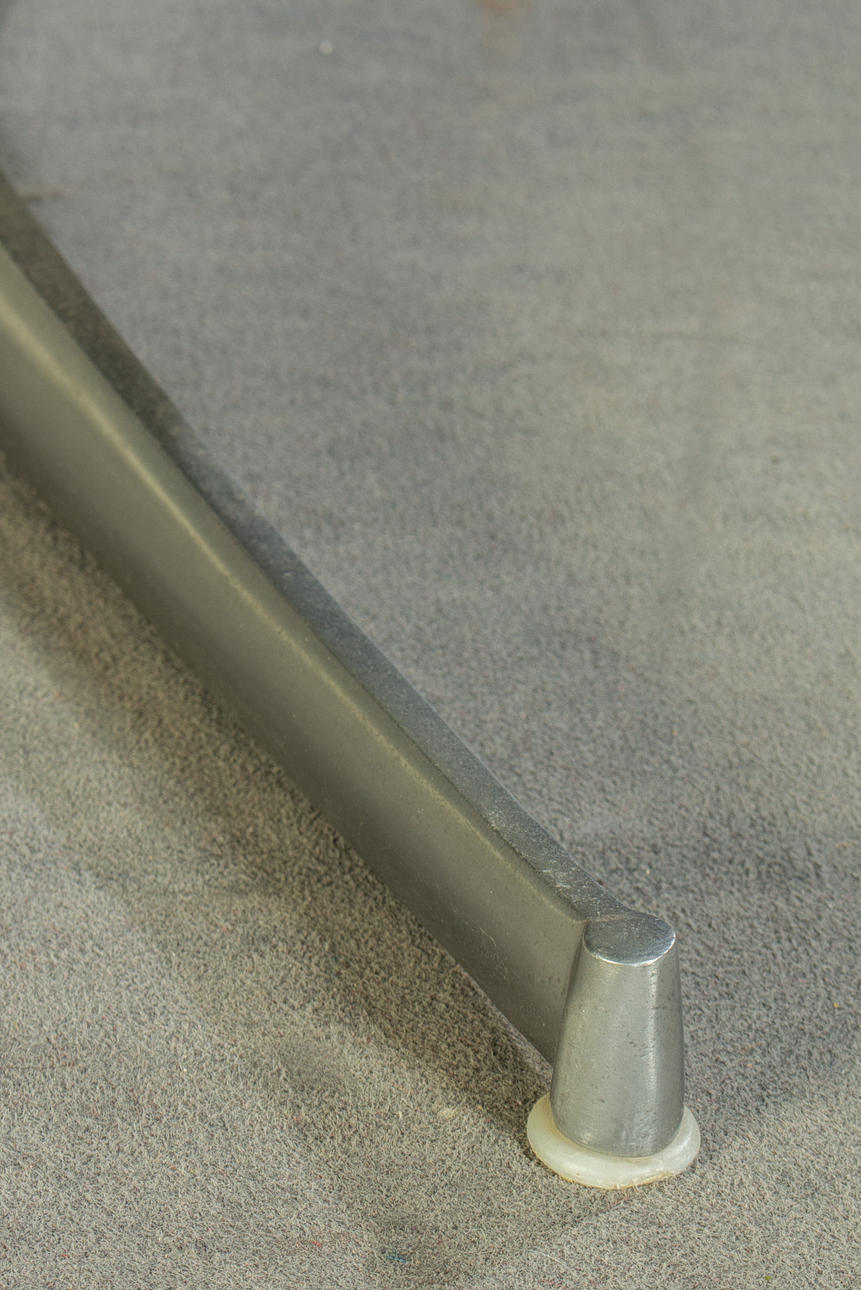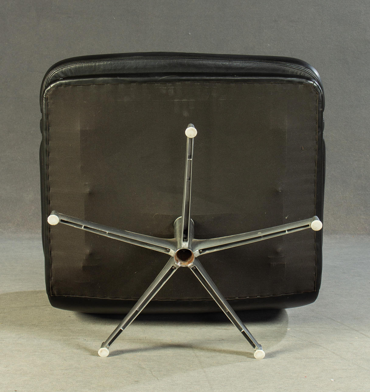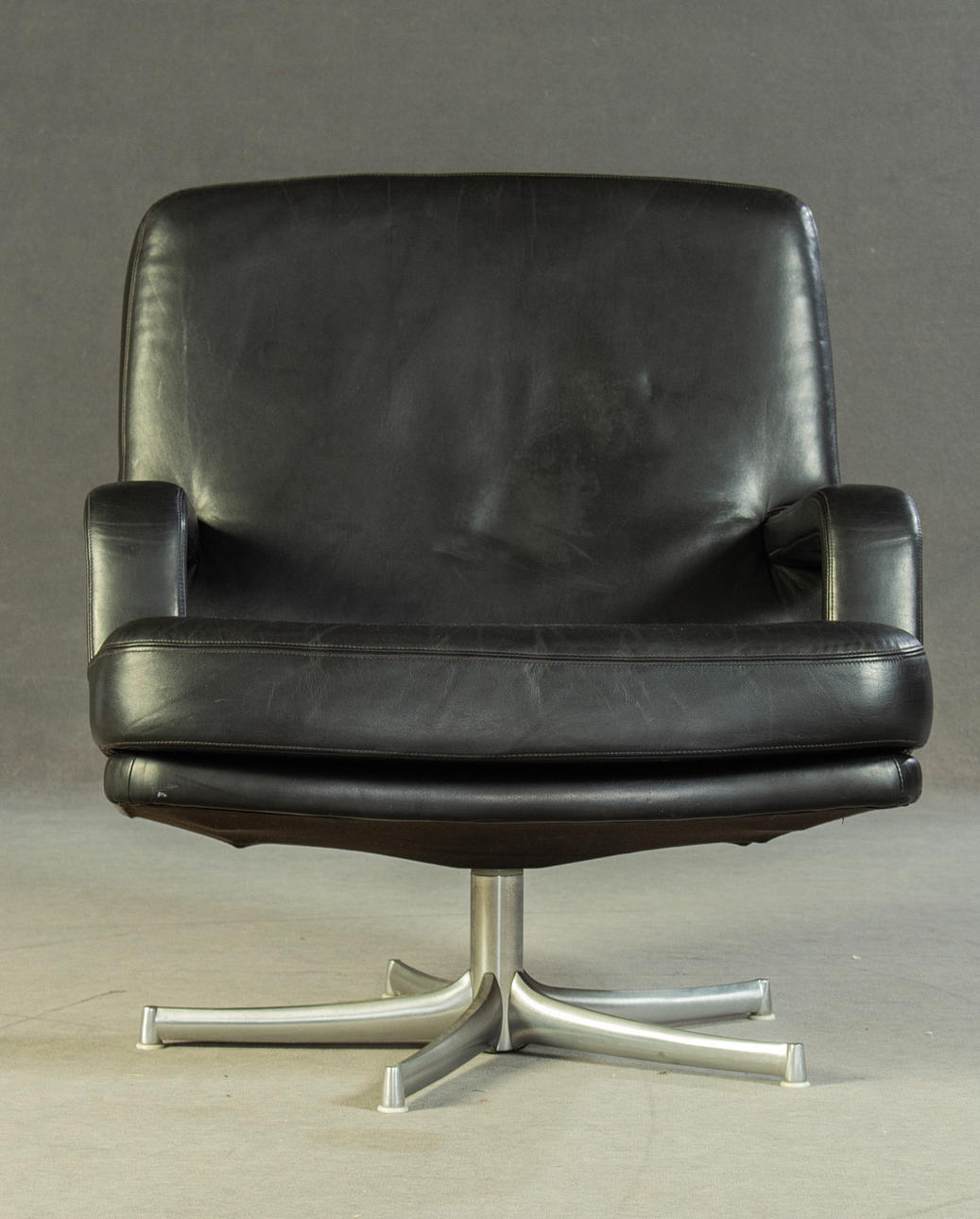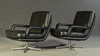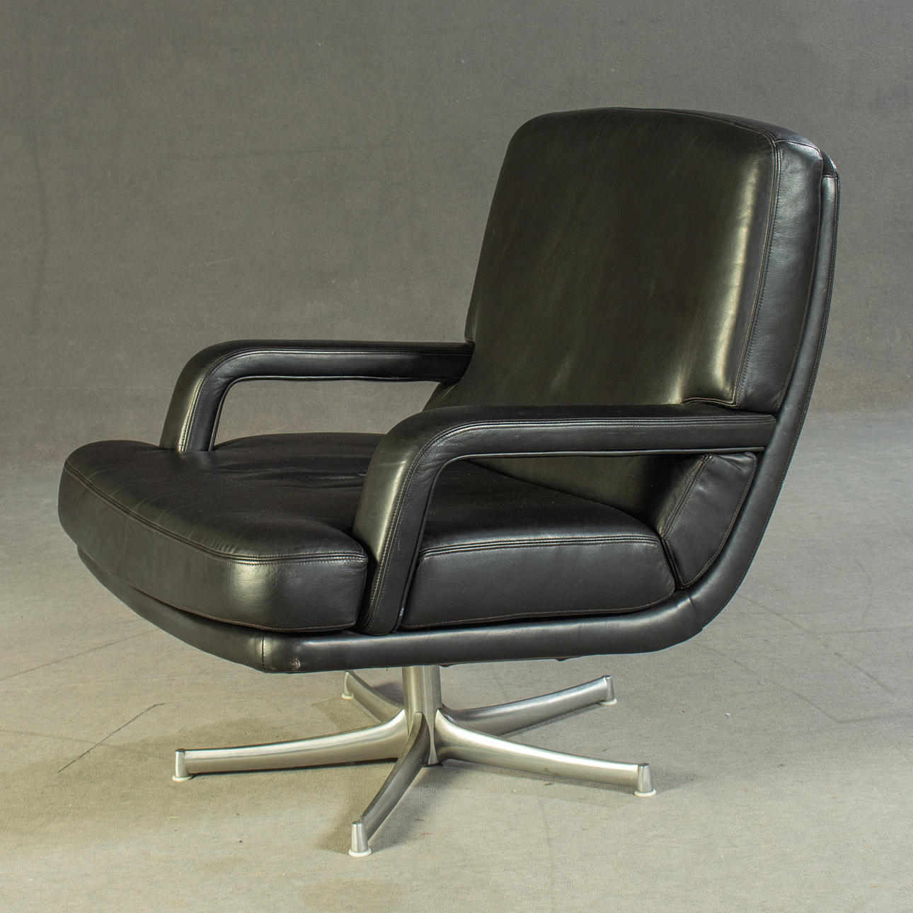 Model "Don" lav ryg. 3 personers lounge sofa og 2 lænestole, tysk design. Udkast omkring 1976. Betræk i sort læder, aluminiumsramme. kontorstol. En mærket med etiket. HxBxD: 82x74/200x78 cm.