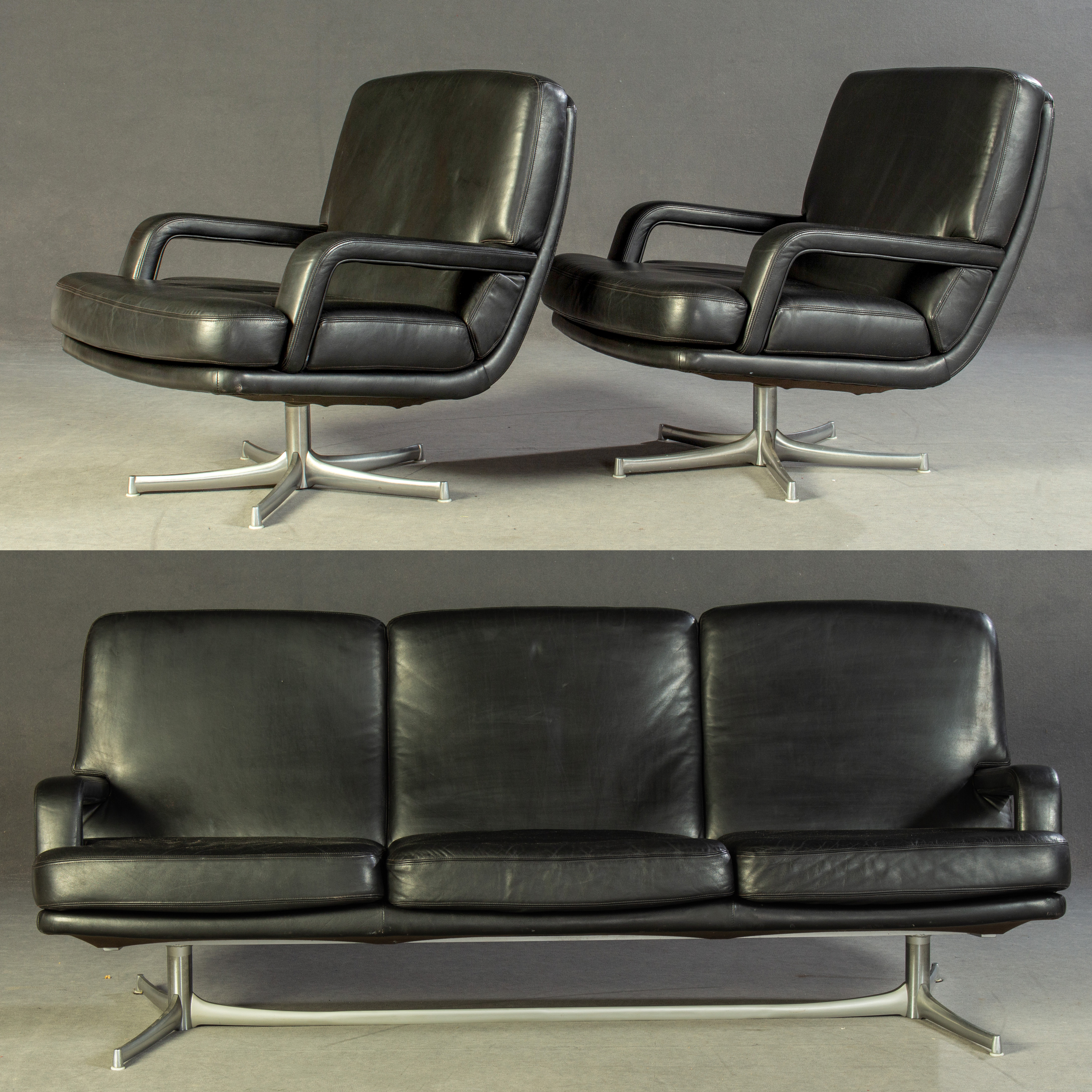 1787697. BERND MÜNZEBROCK. Walter Knoll, sofa + 2 lænestole, sort læder.