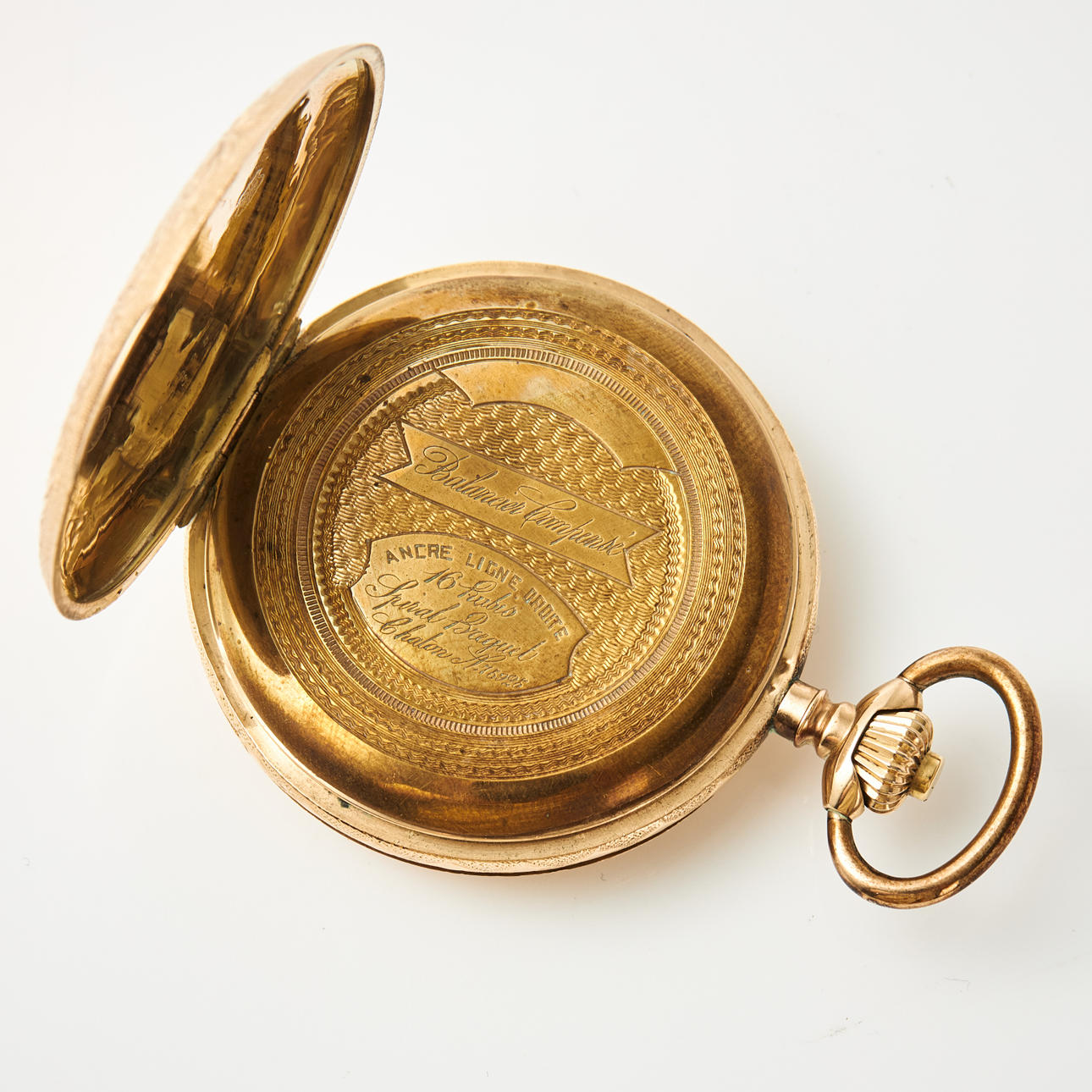 Savonet, hvidemaljeret urskive, inderlåg i metal, anker, diameter 50 mm, vægt ca. 81 g.