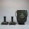 1804097. JUST ANDERSEN. VASE, samt LYS, Bronze.