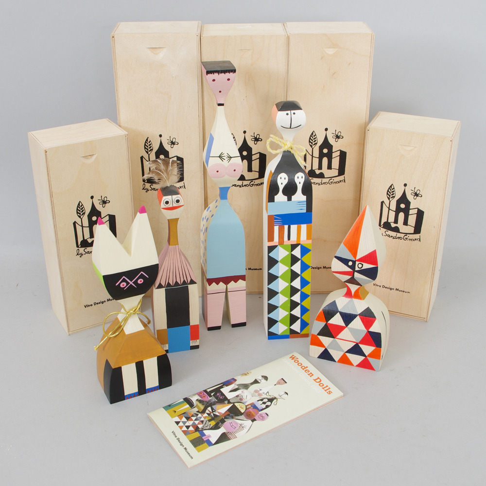 180730. TRÆDUKKER, 5 stk, Alexander Girard, Vitra.