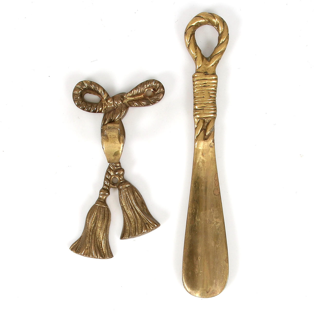 1811987. SKOHORN, med ophæng, messing, 20. århundrede.