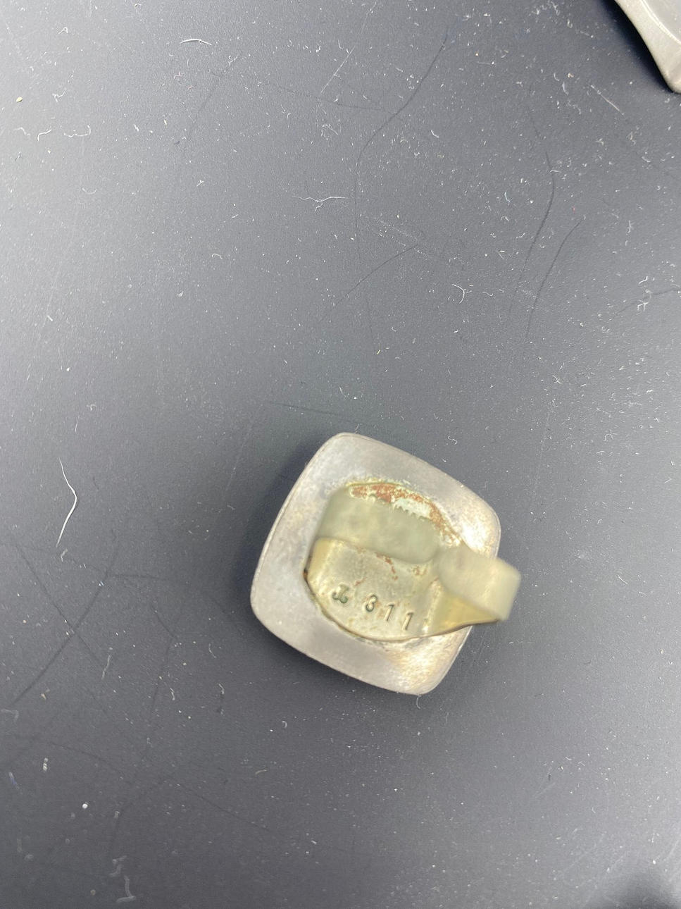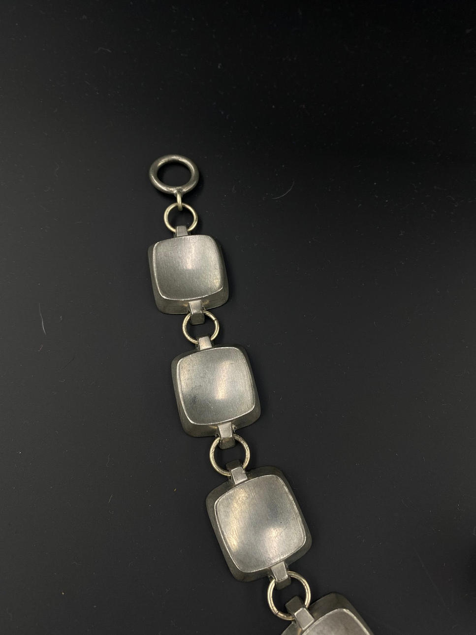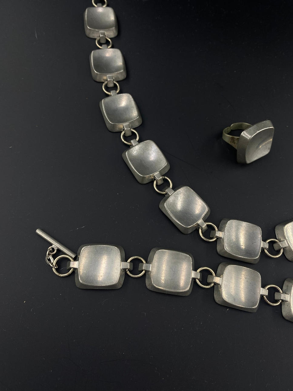 Jørgen Jensen, smykkesæt, tin, Danmark. Stemplet: 311, Danmark. bestående af: armbånd, kæde og ring.