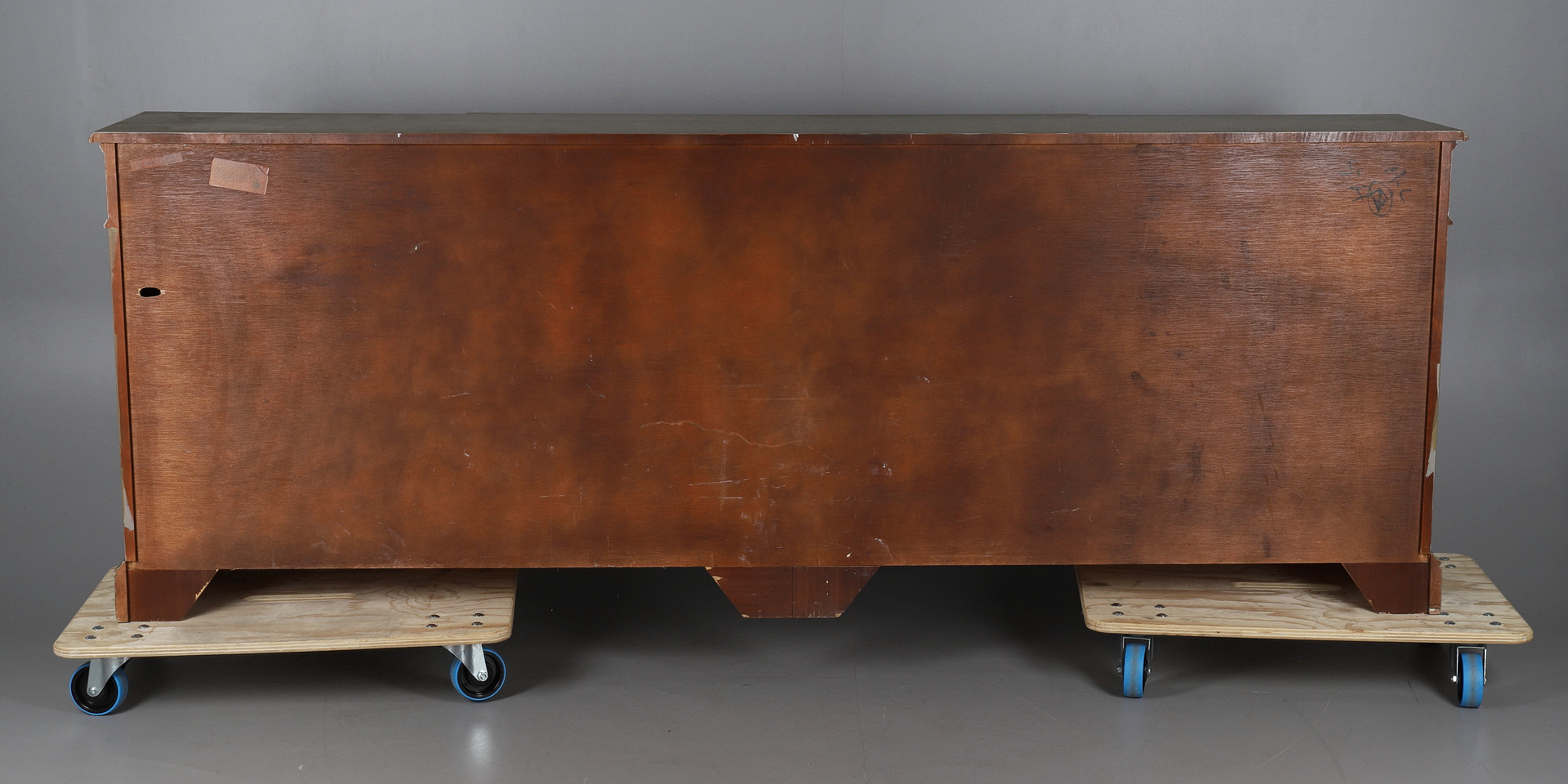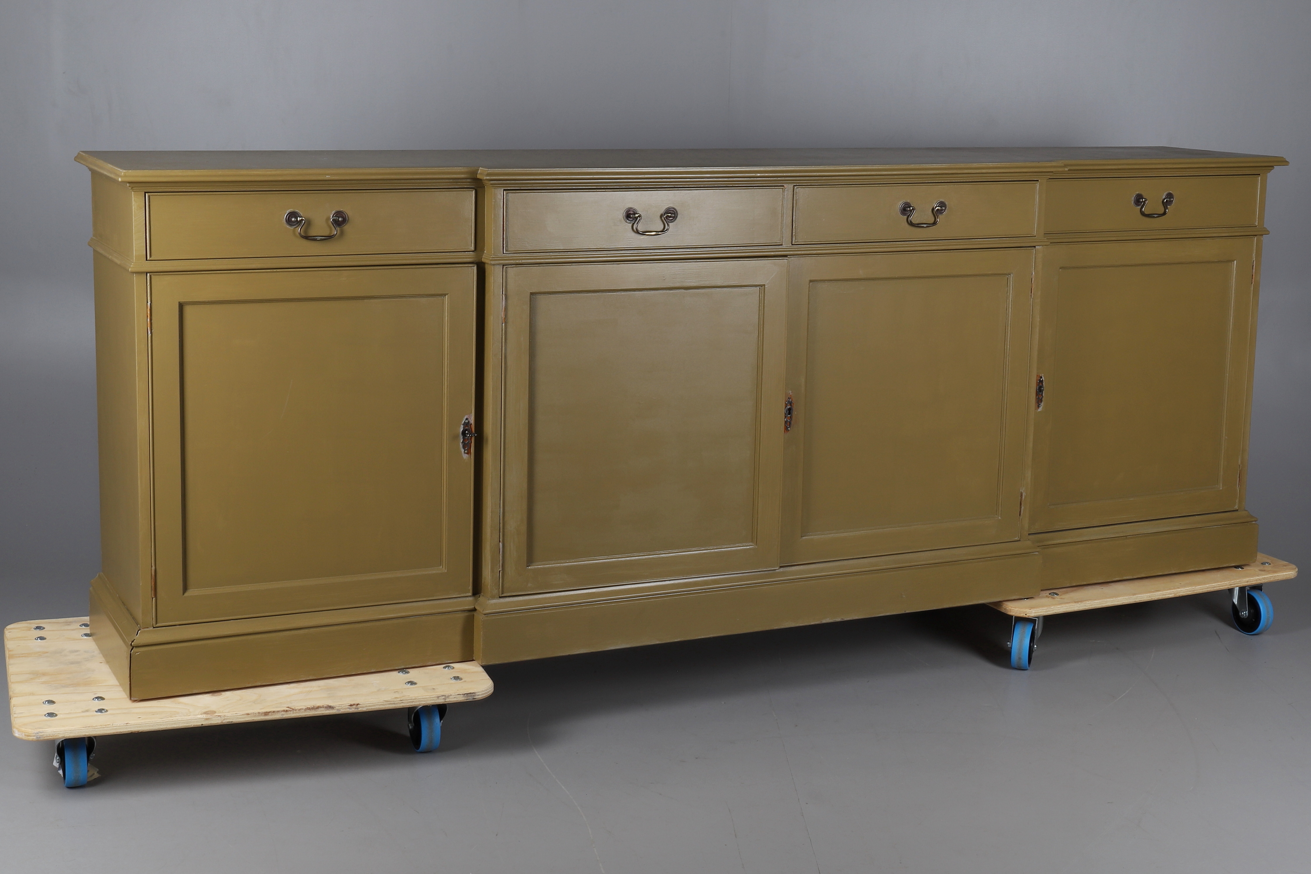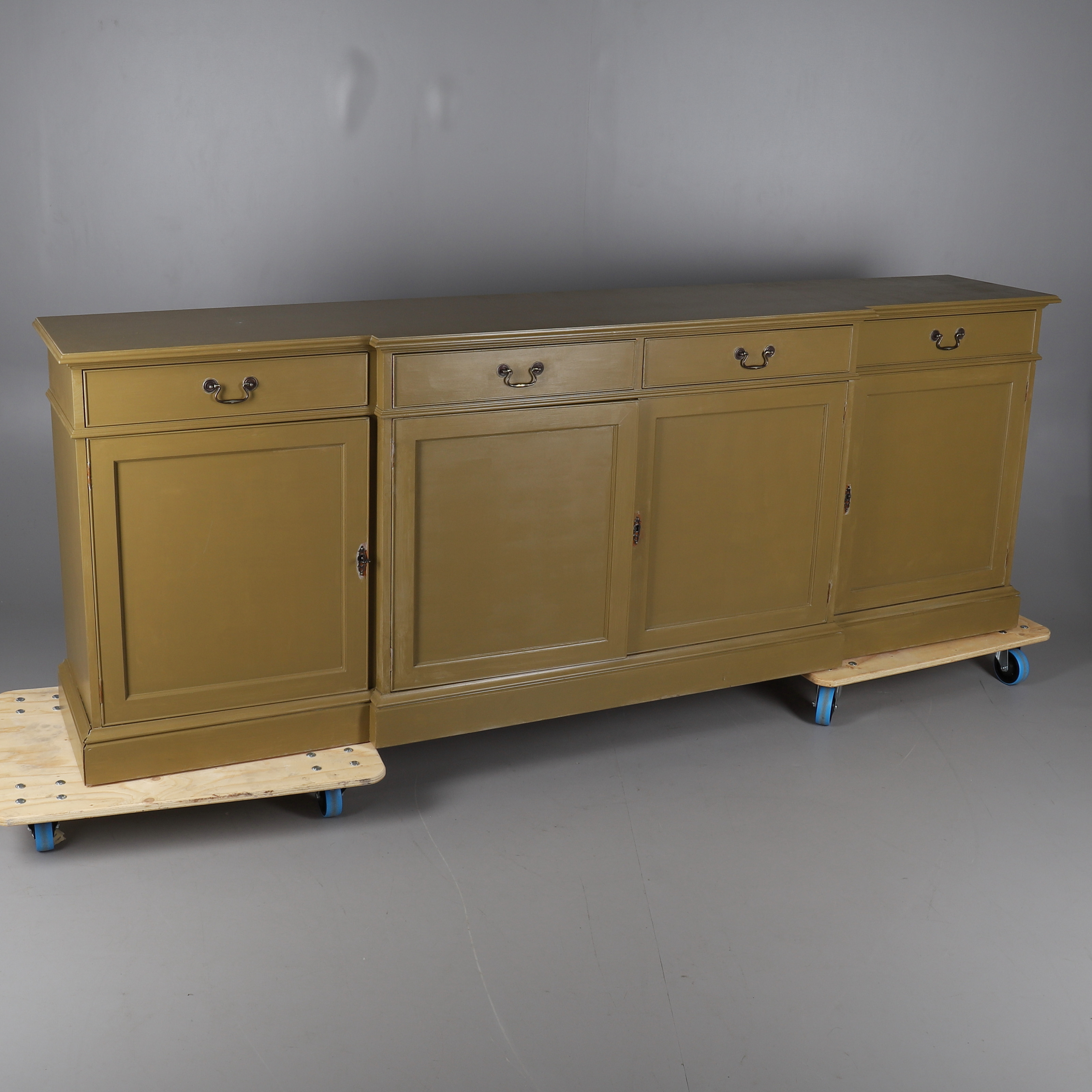 1817753. EN MODERNE OLIVENGRØNMALT BREAKFRONT SKÆNK.