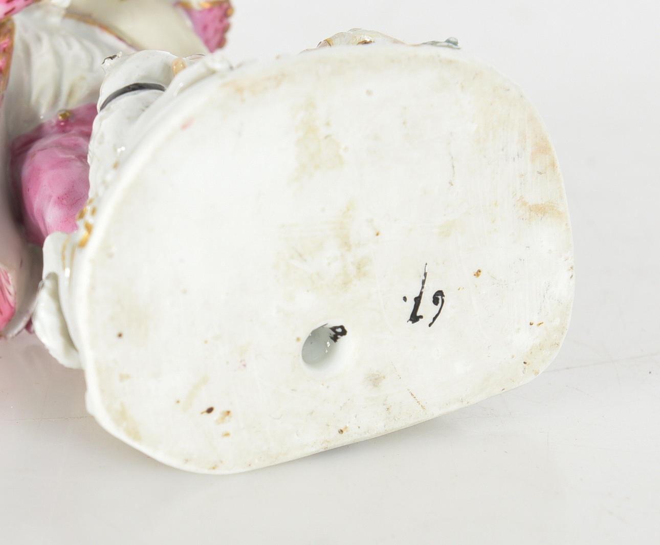 Porcelæn, håndmalet dekoration, markeret med krydsede sværd i blåt på soklen bagpå, og med sort blæk '67.' nedenunder. H ca 15 cm.