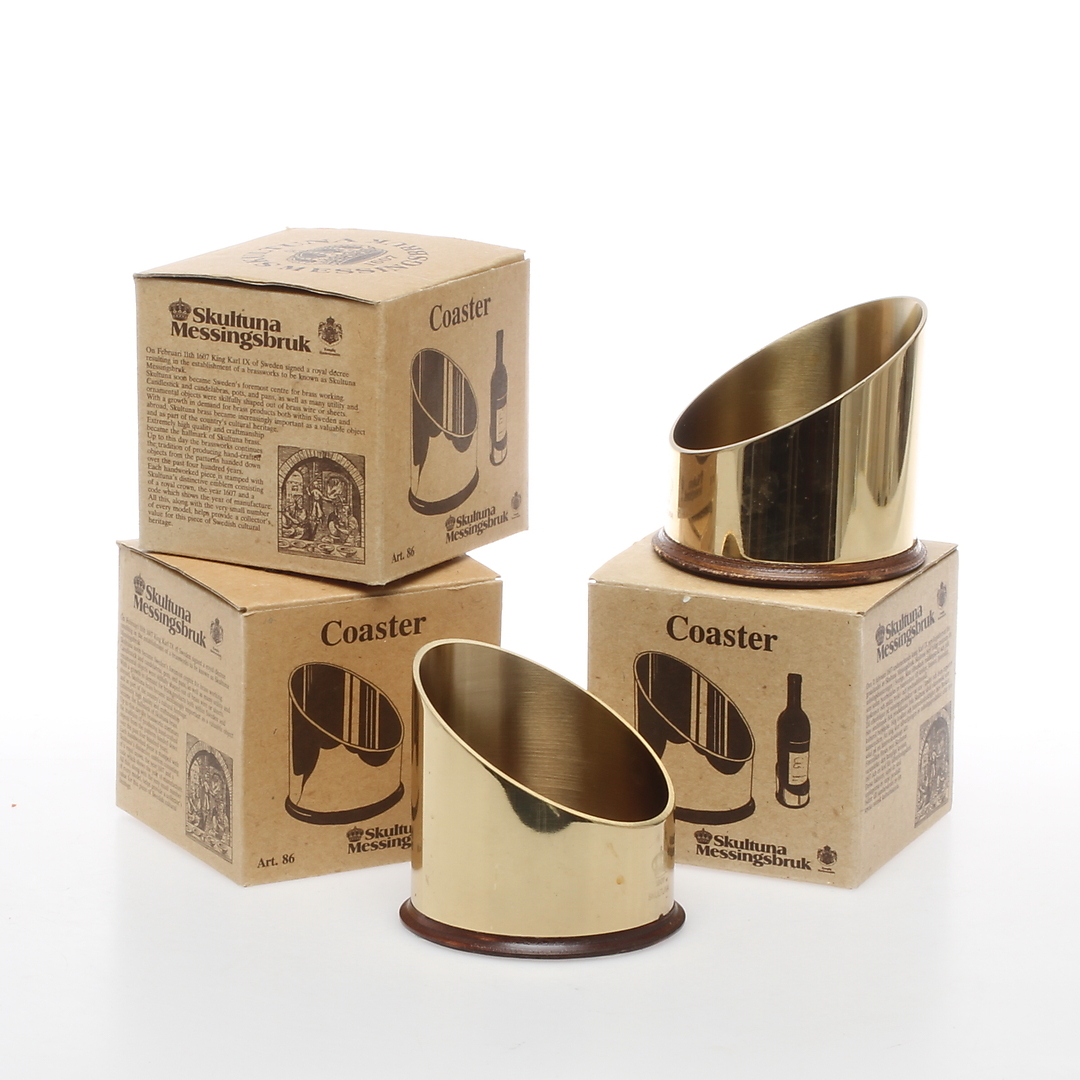 181790. COASTERS, 5 stk, messing og træ, Skultuna.