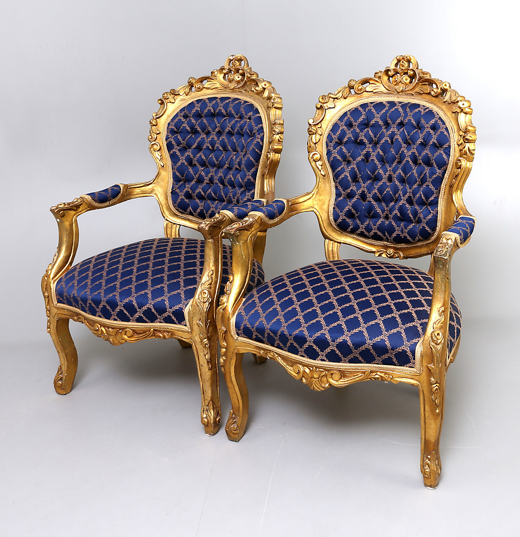 181802. LÆNESTOLE, 1 par, rokokostil, 1900-tallet.