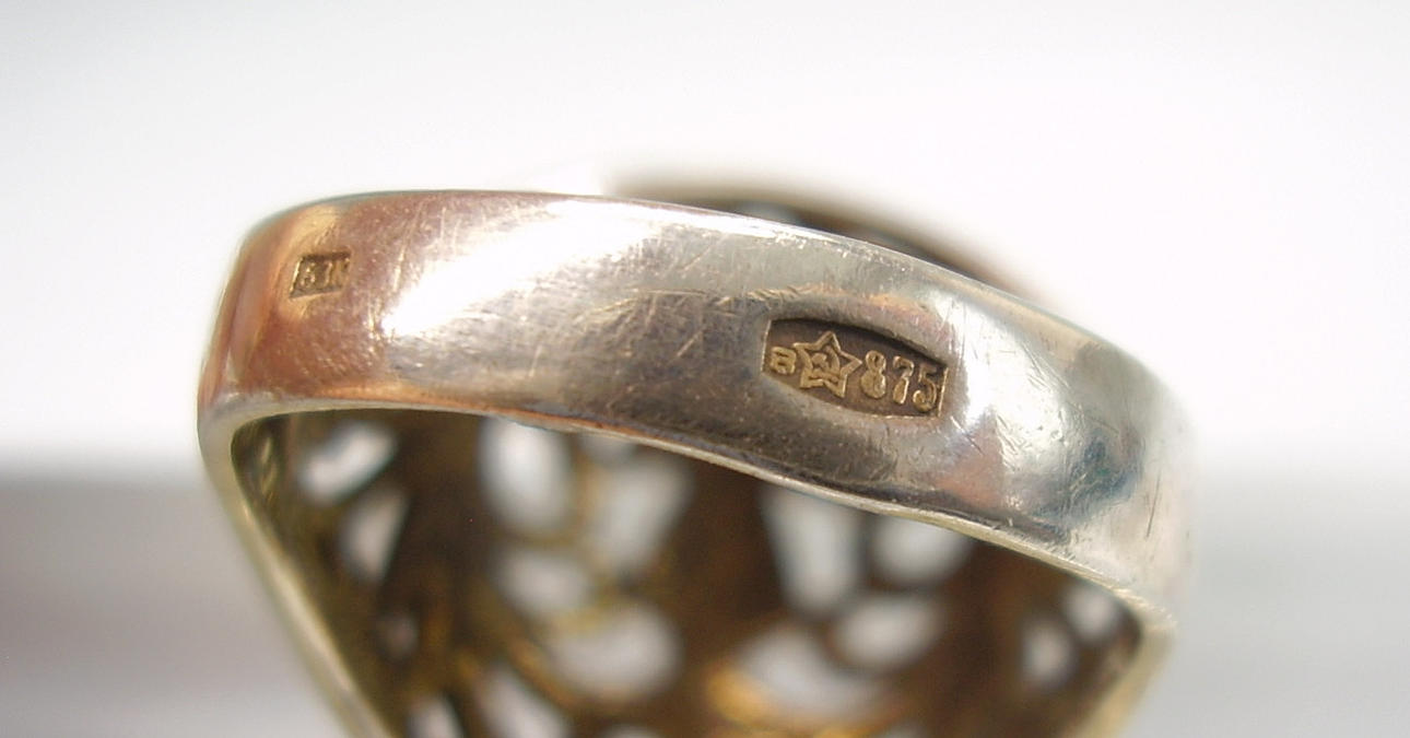 Den antikke russiske ring er lavet af 875 sølv og stemplet med det gamle sølvmærke fra Rusland samt med testmærket for sølv.