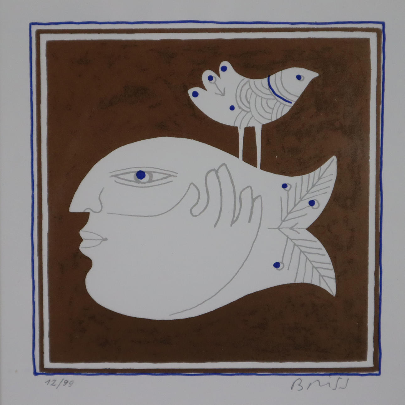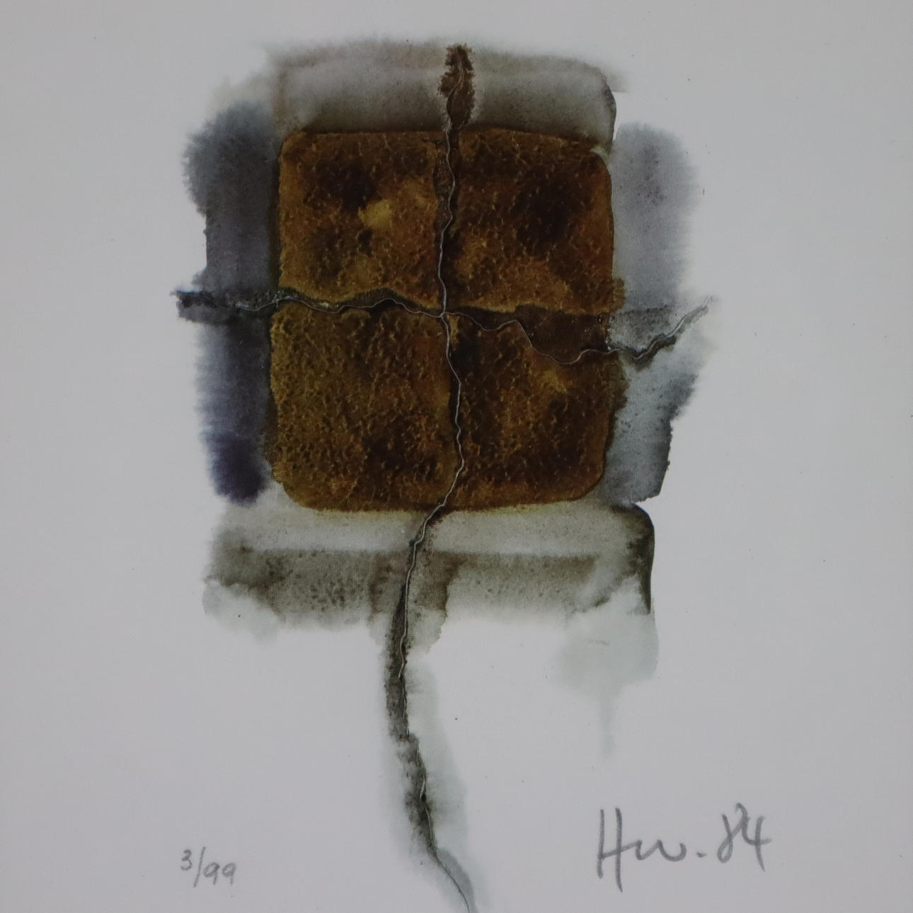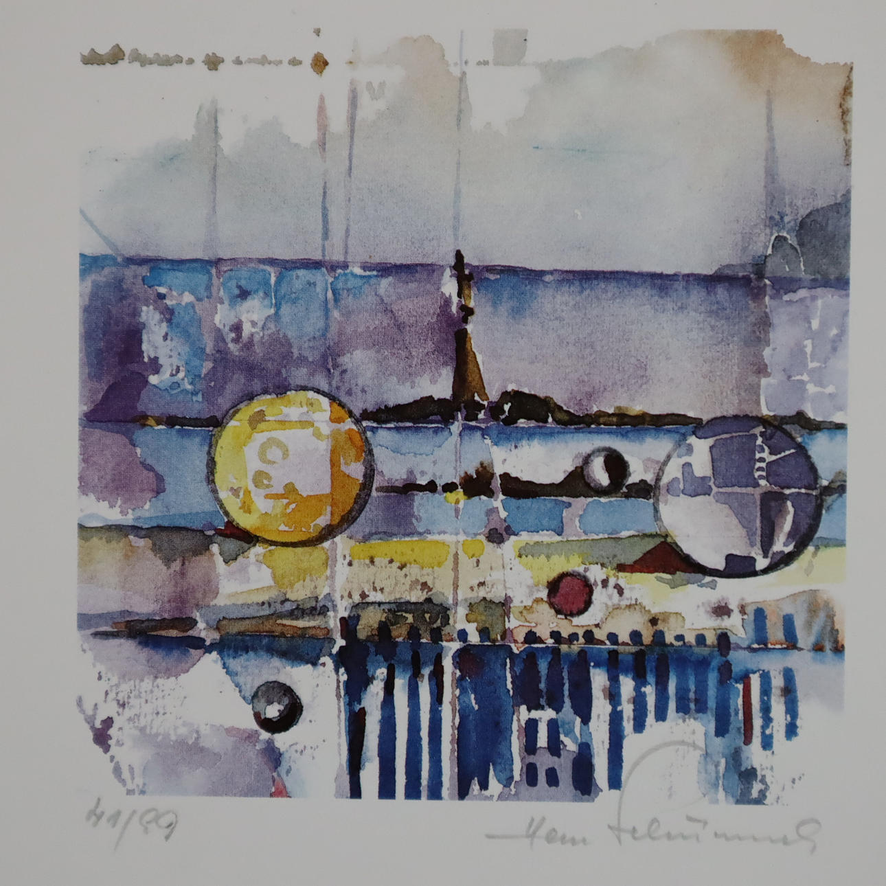 Håndsigneret, nummereret, udgave af 99 stk., inklusive Gisela Kleinschmidt, Jürgen Hardtke, Rudolf L.Reiter, Peter Krawagna, LOUIS (LGNBusman), Berrocal, Hem Schüppel, Günther Walz, hver ca.14x13cm, alle i PP, to under glasindfatning (ca.33x27cm).