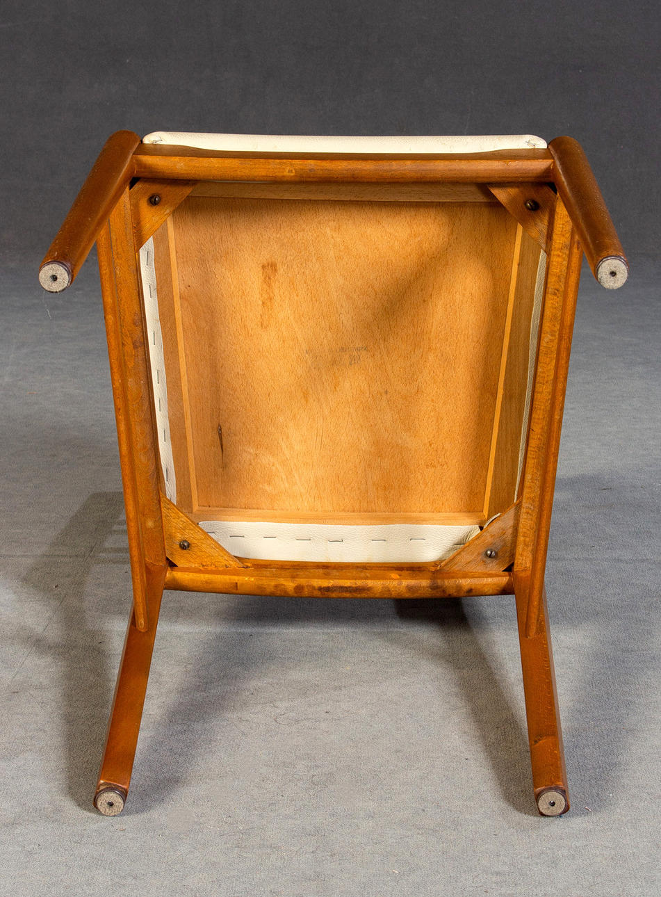 Fastrup Møbelfabrik, fire stole model nr. 219, dansk design, 1960'erne. Konstruktion af bøgetræ, ryglæn i teaktræ. Sæde betrukket med beige læder. mål ca. H. 86 Sh. ca. 46 cm.
