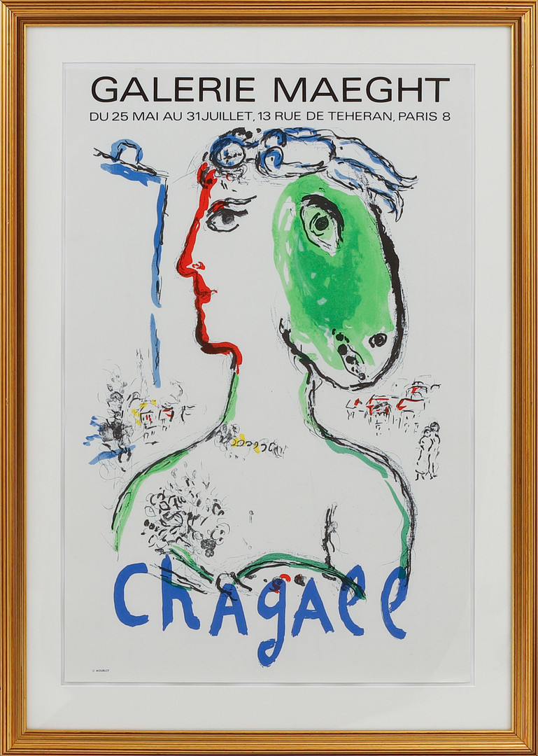 1829003. MARC CHAGALL. EFTER. Komposition med figurer, efter udstillingsplakat.