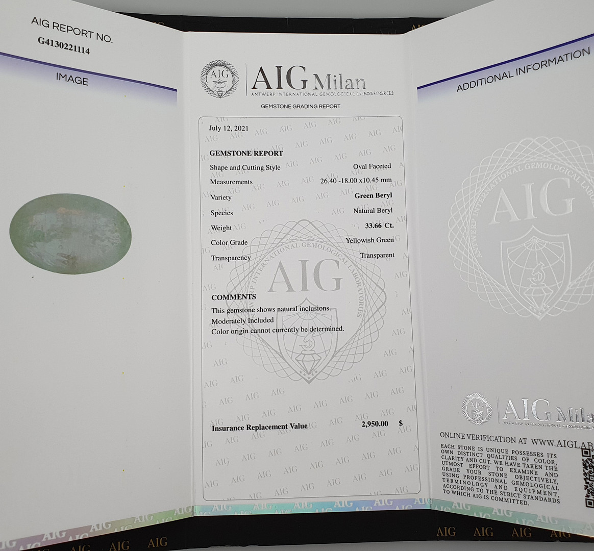 1832604. NATURLIG GRØN BERYL 33,66 ct.