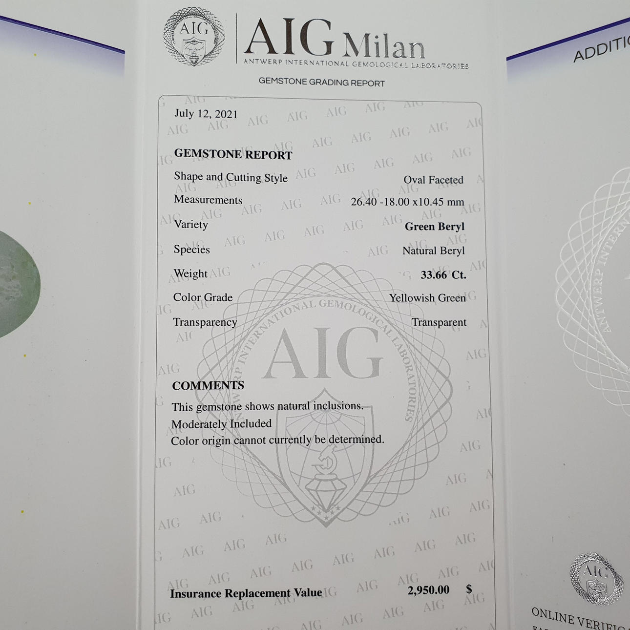 farve: Gullig grøn, gennemsigtig Denne sten blev vurderet af AIG i Milano.