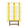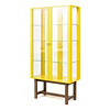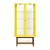 Lakeret ramme. Indvendig med glashylder og belysning. Ben i bejdset træ. Bredde 90, dybde 40, højde 180 cm.