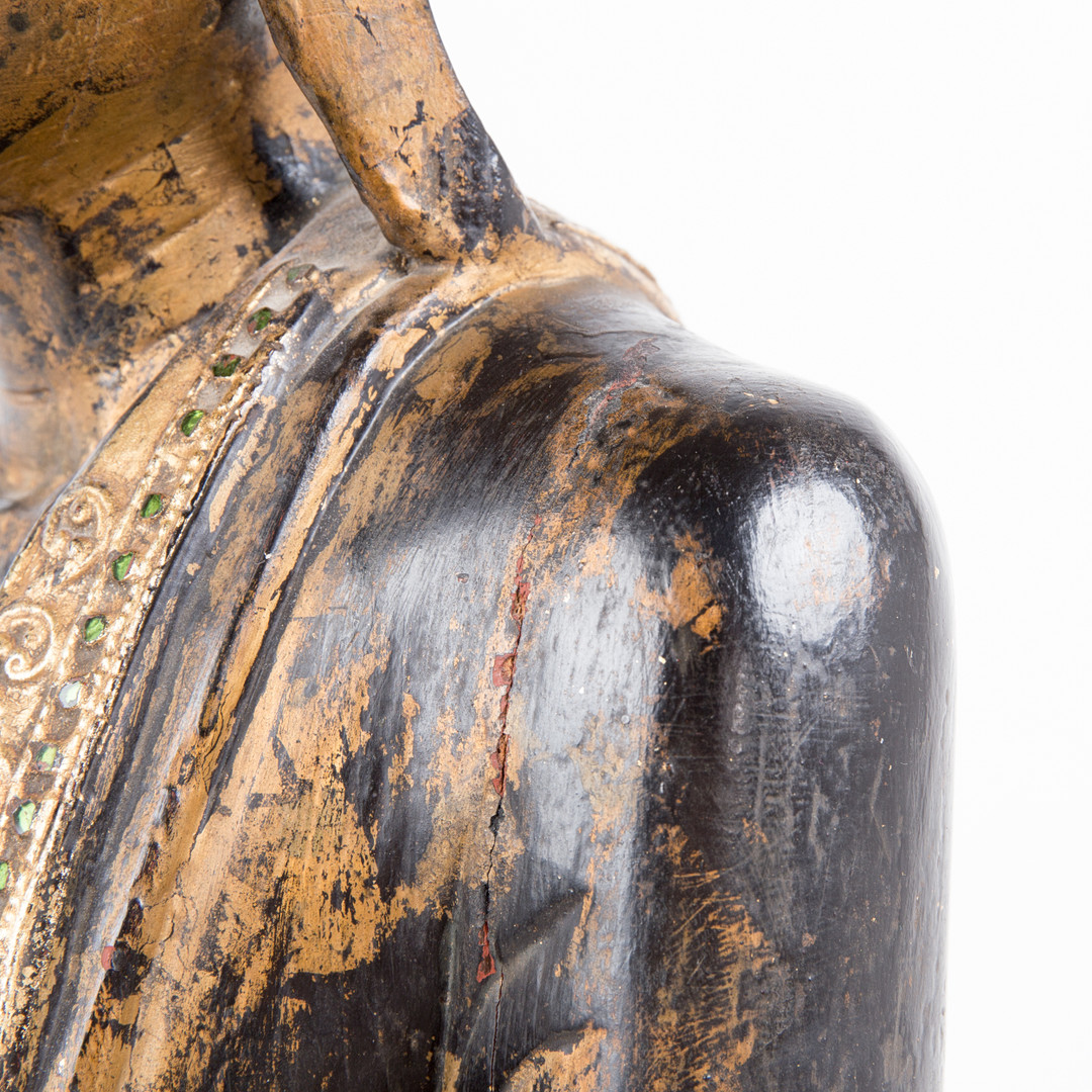 1838730. Figur / skulptur, Buddha, træ, sten.