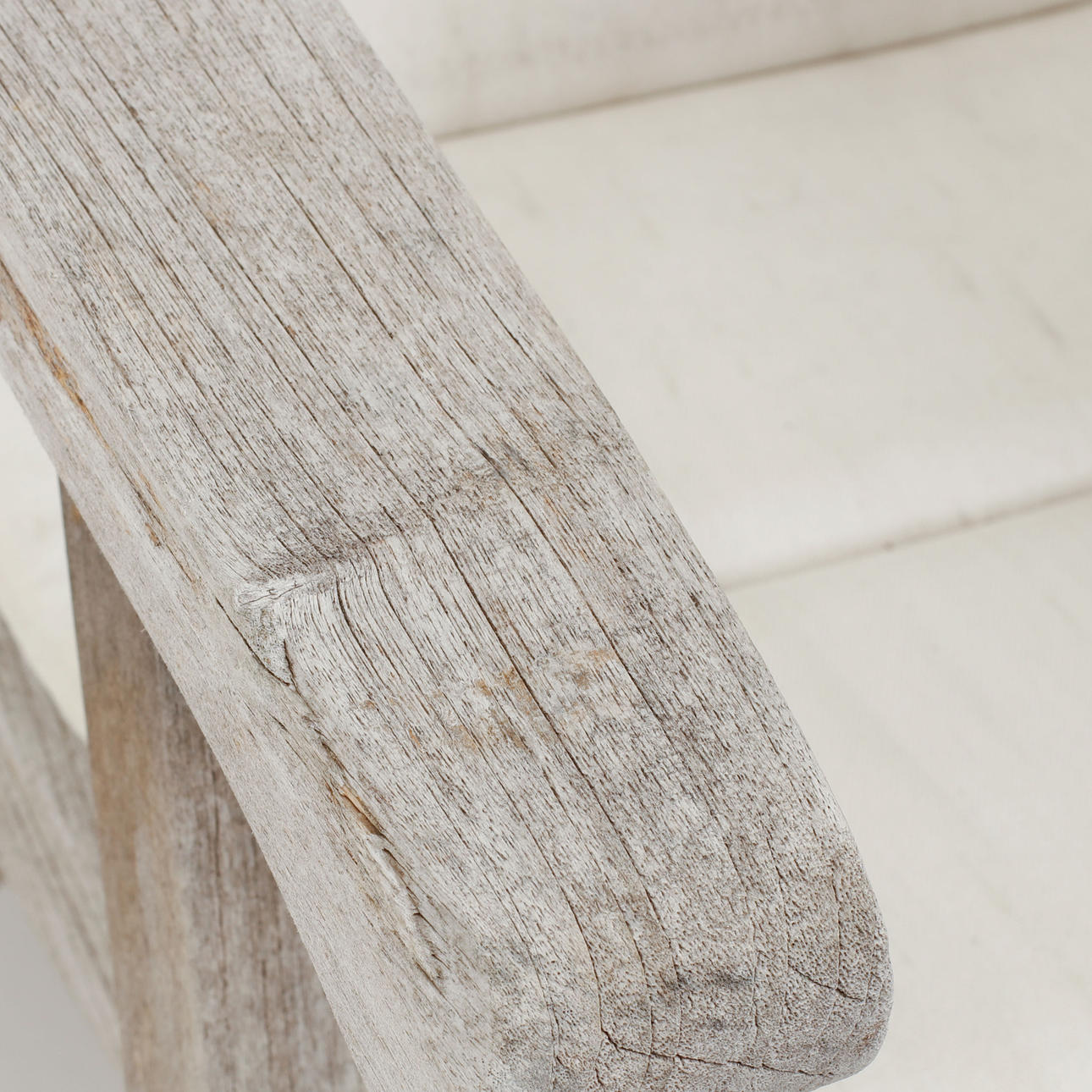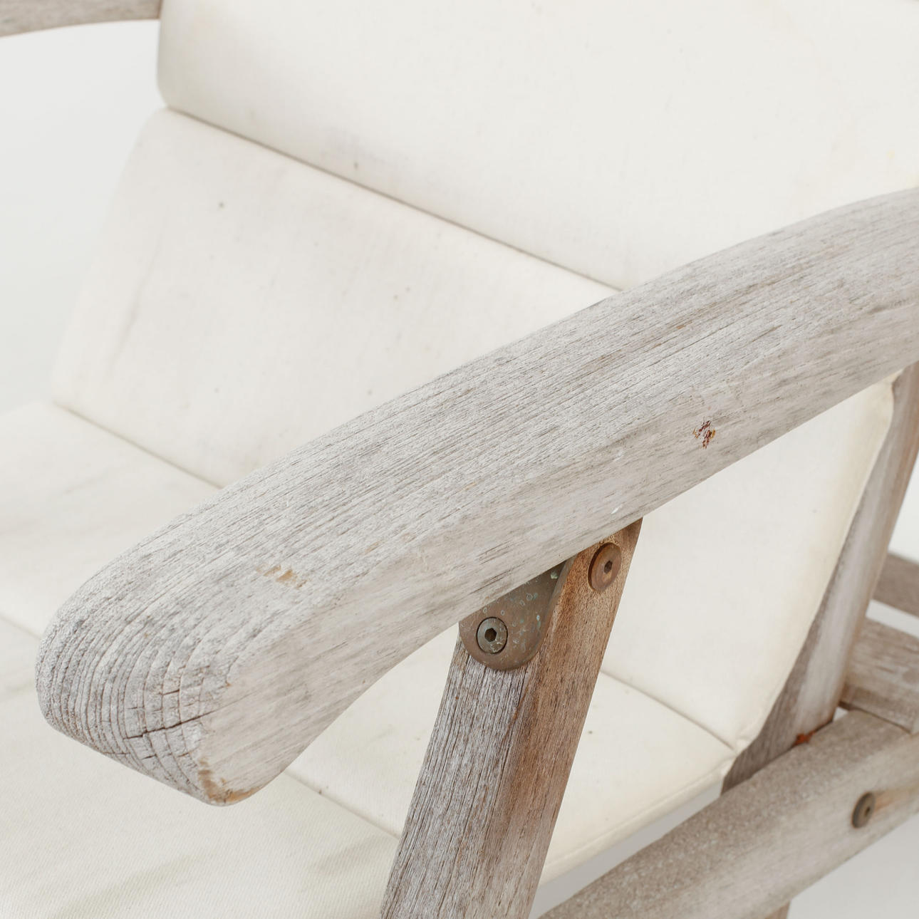 Teaktræ med løse hvide hynder. Mærket.