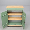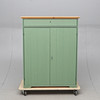 Malet. En skuffe og et par låger med underliggende hylder. Længde 109. Bredde 50. Højde 138 cm.