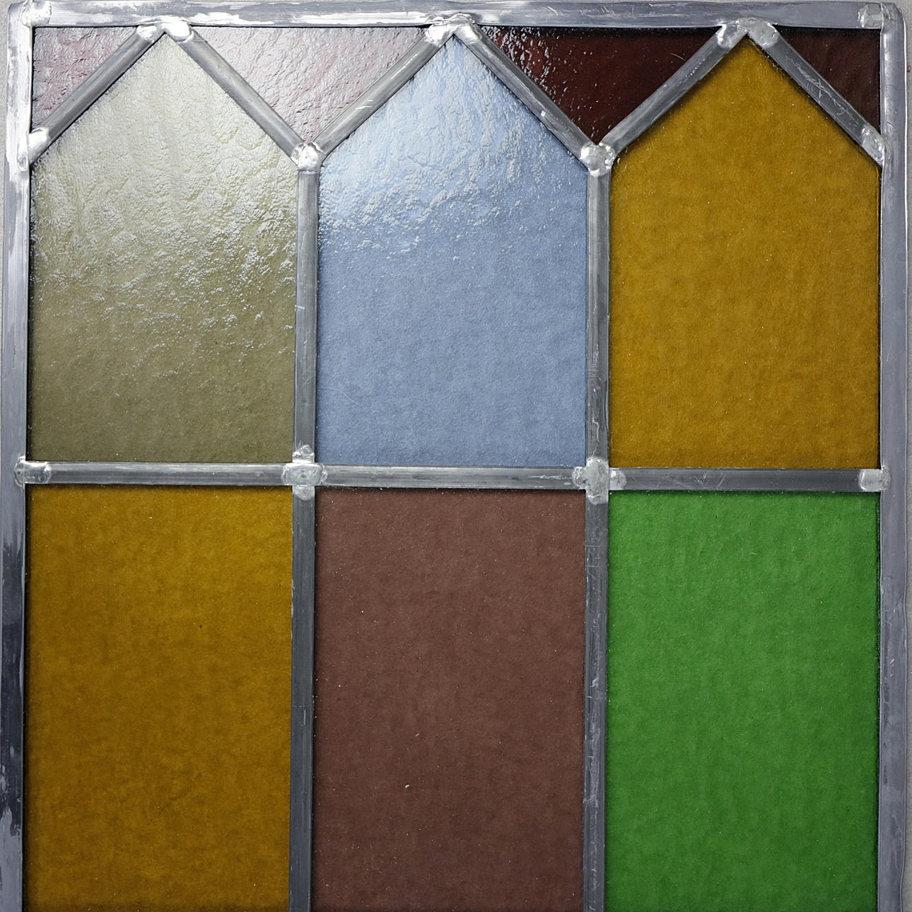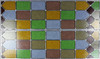 Flerfarvet glas.